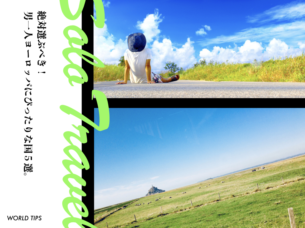 現地でも男ひとり旅の方をよく見かけたなあと思った国を選びました。