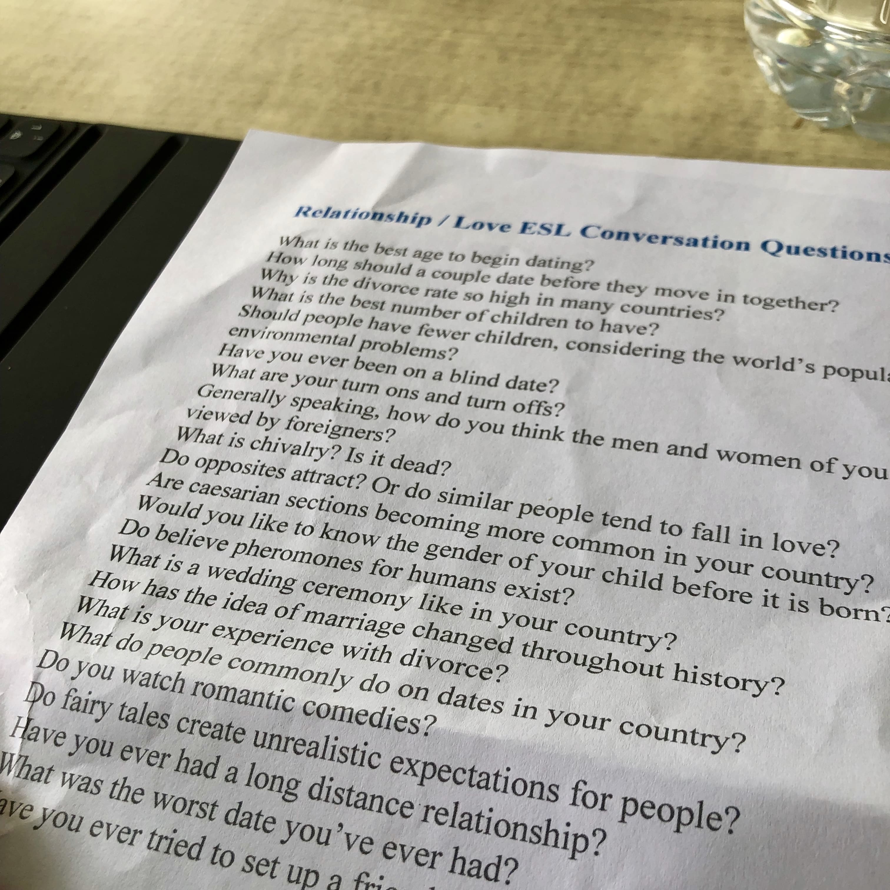 1週間後には、かなり英語を聞く・話すことに抵抗がなくなり。(上手い下手は別の話♡)先生もめちゃくちゃ良い人で、いと楽しきかな。