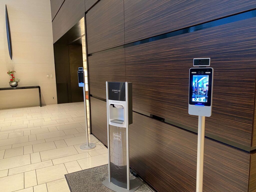 1階の時点で、体温検査とアルコール消毒コーナーが!