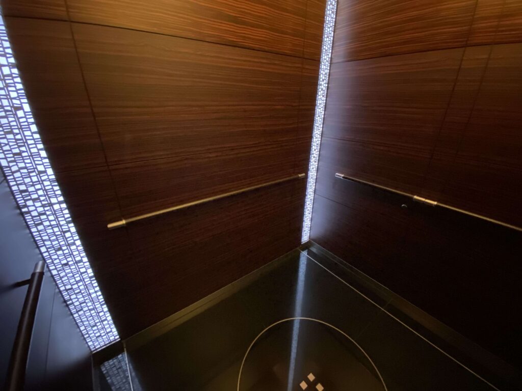 エレベーターの内装。適度なゴージャス感。