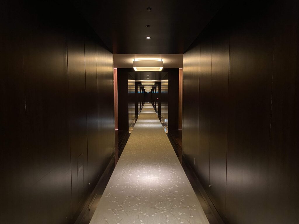 ▼客室フロアの雰囲気は先ほどとガラッと変わります。黒く、シックで落ち着いていて、かっこいい。