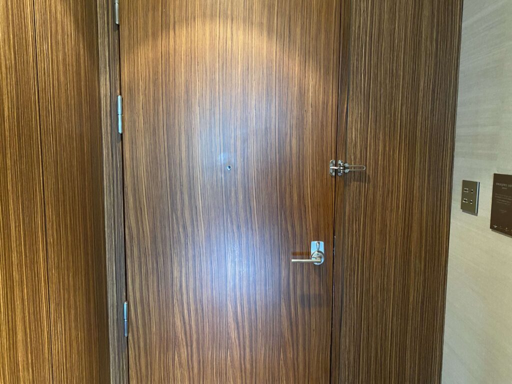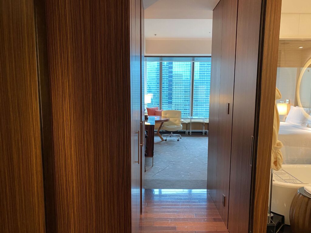 ▼ドアを開けると見える景色。高級ホテルにはよくあるレイアウト。シャングリ・ラ、ヒルトンお台場、ザ・プリンスギャラリー 東京紀尾井町とかがこういうレイアウトでした。