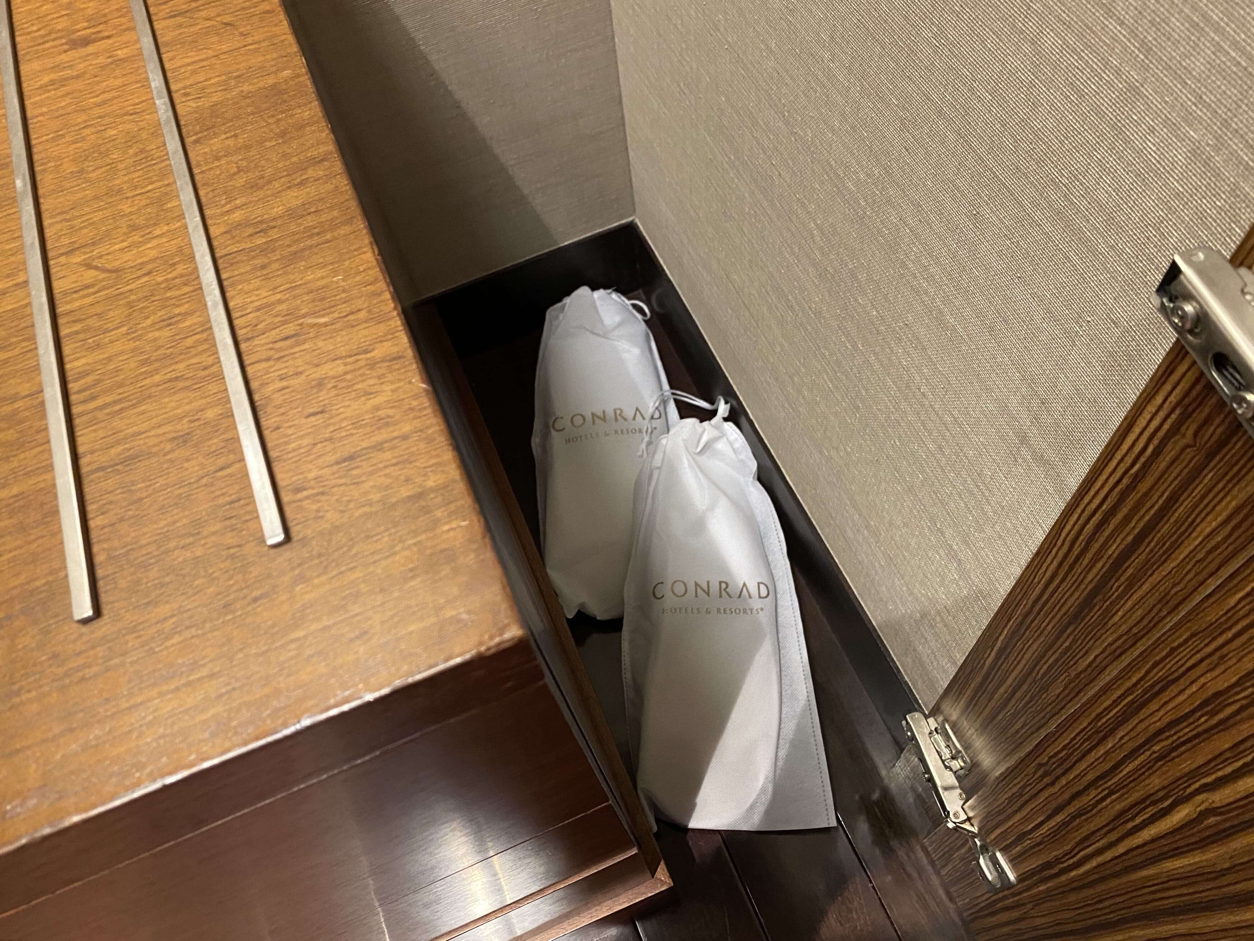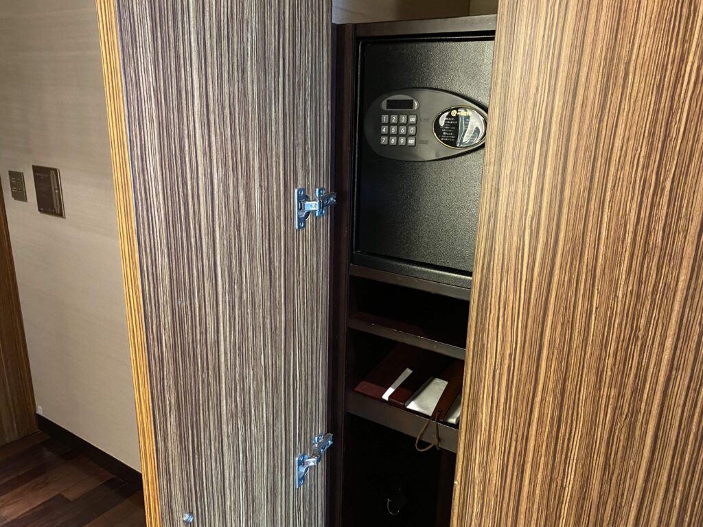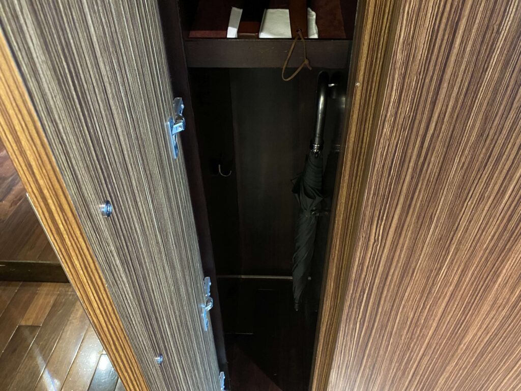左には、金庫や傘。5つ星ホテルの定番グッズはしっかりと揃っていました!