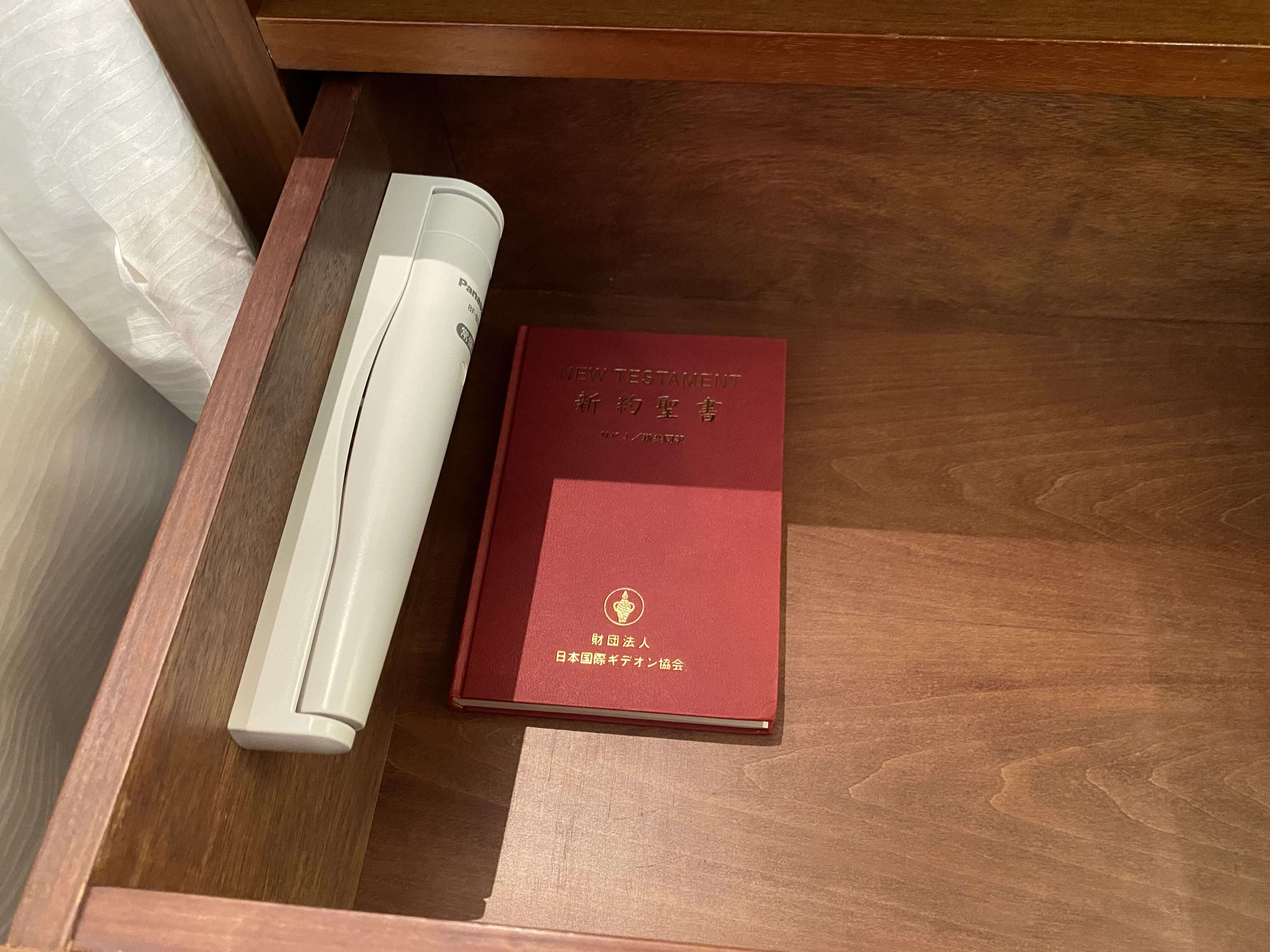 安定の聖書。どこもかしこもなんでここに聖書あるんだろw▼お次は、ベッドをチェック!