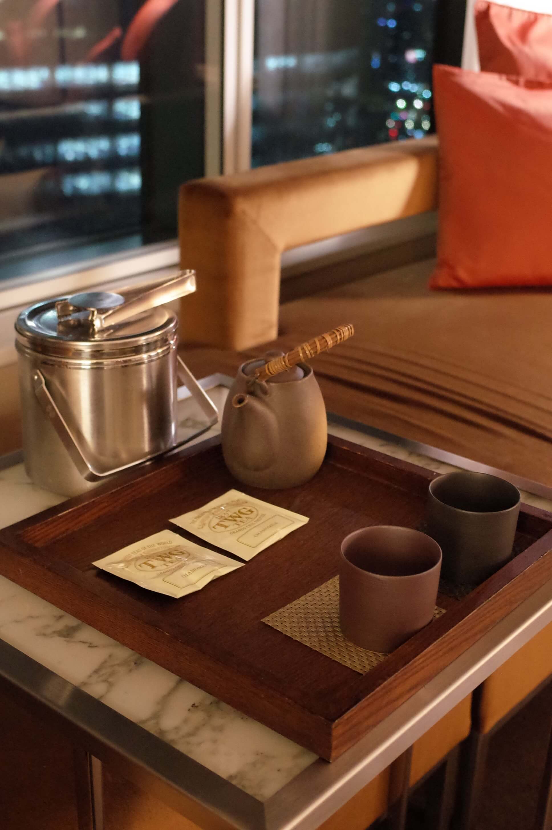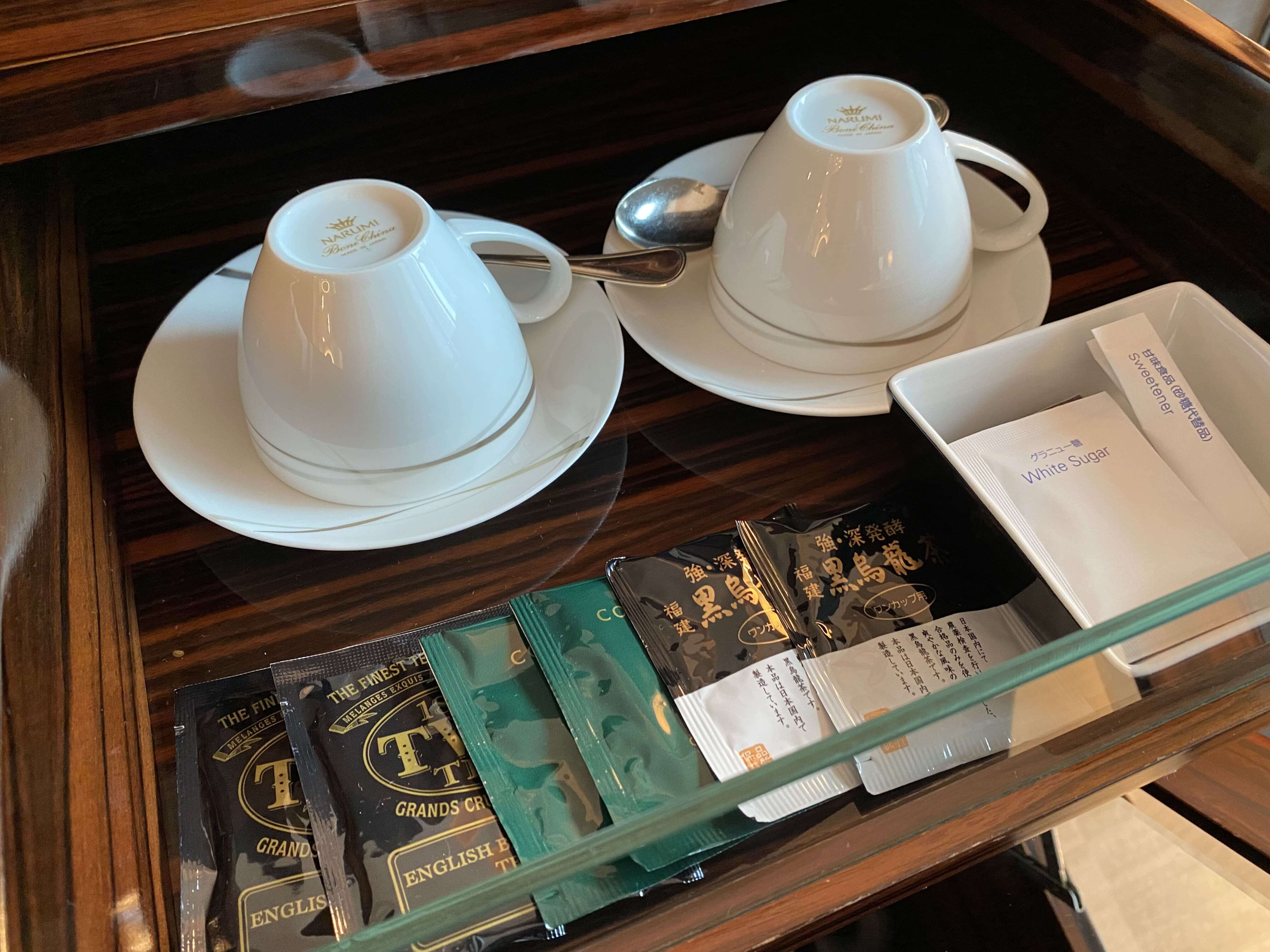 お水、氷(画像上の銀の入れ物)とTWGの紅茶が設置。