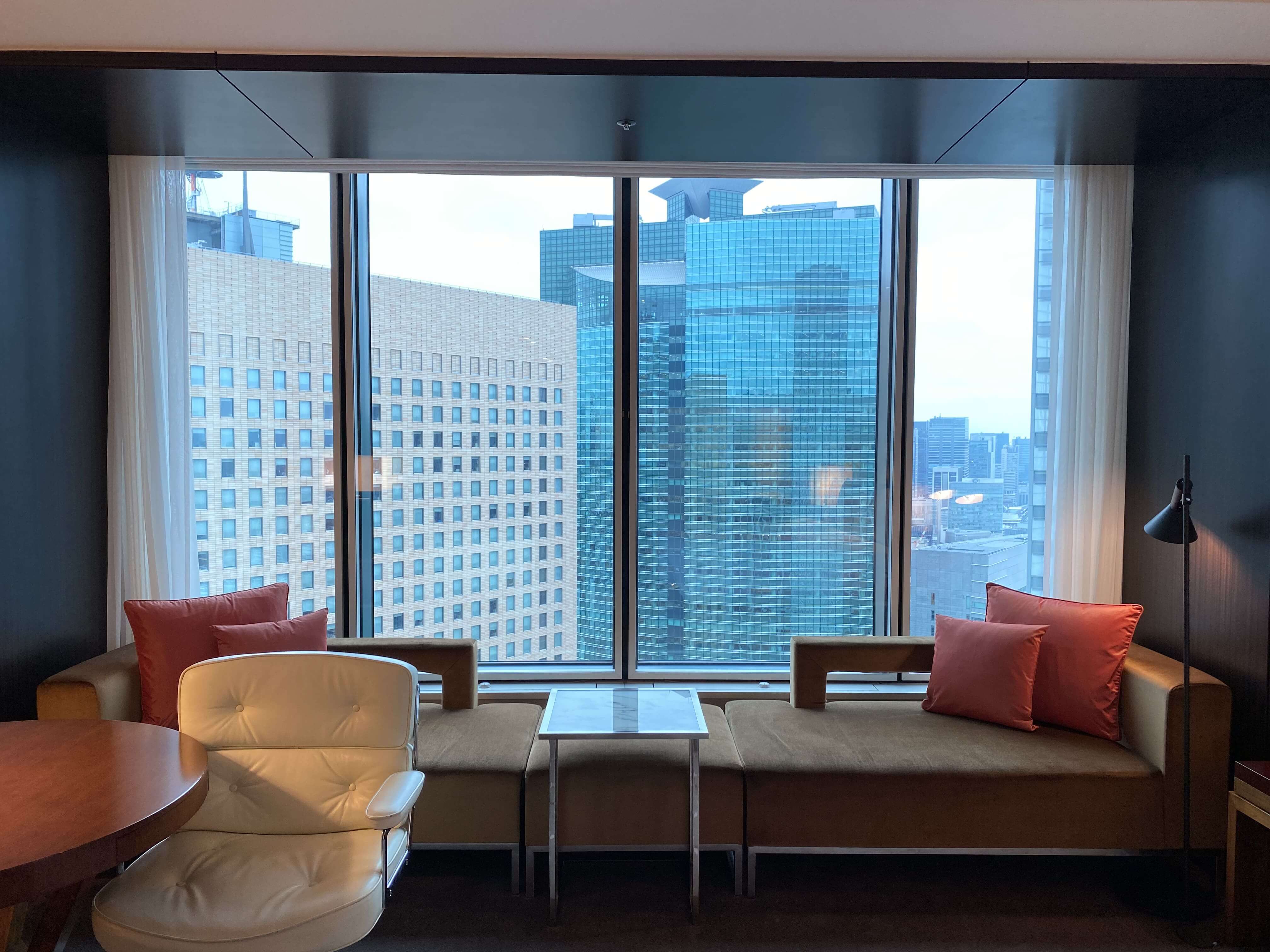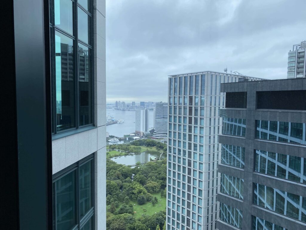 最初に結論を言いますが、眺望が超微妙なので、コンラッド東京に泊まる時は、最低でも、ベイビュールームにするのがおすすめです…!
