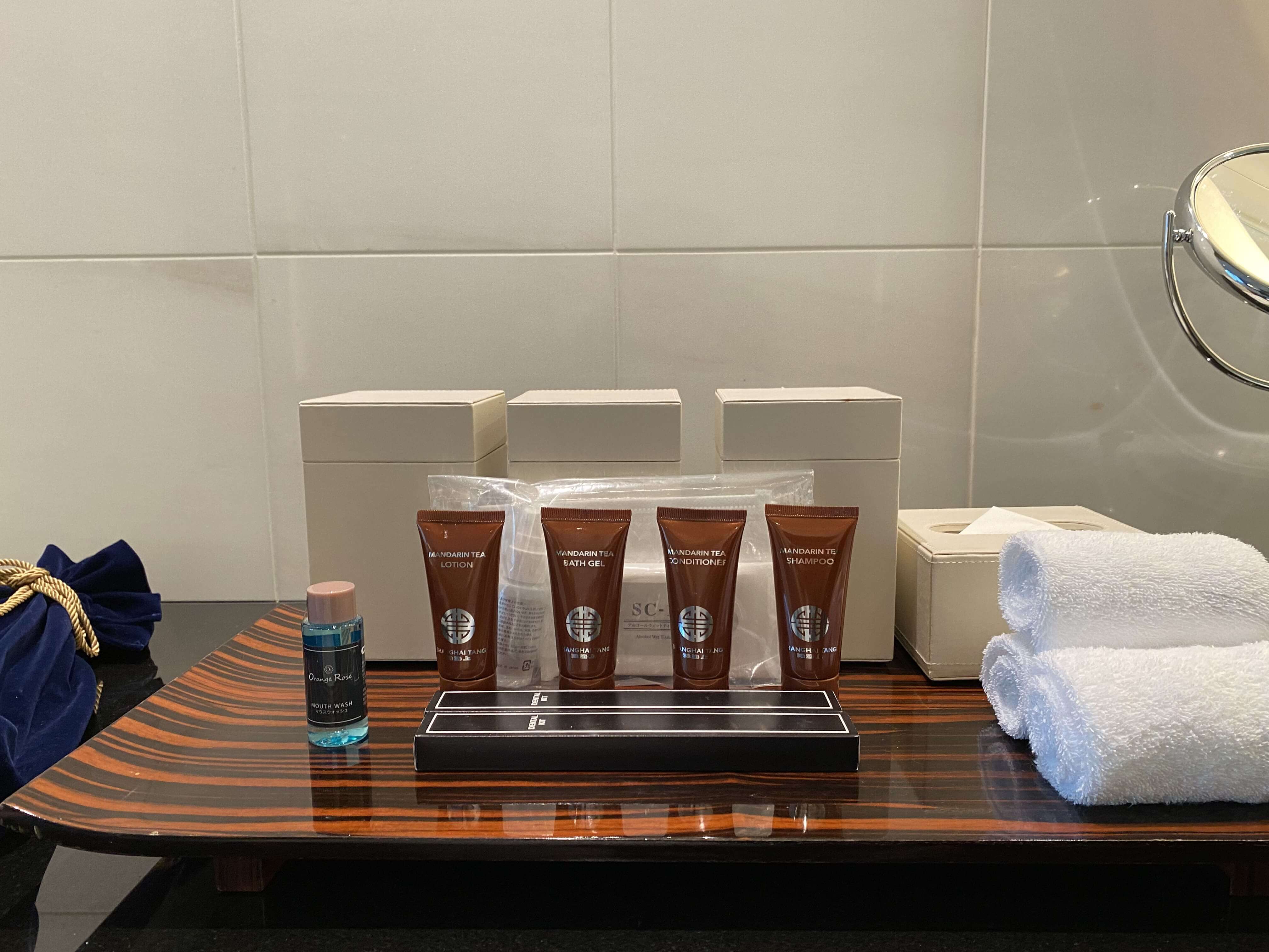バスアメニティは、香港発祥のラグジュアリーブランドSHANGHAI TANG マンダリンティーのものでした。匂いは重くなく、遠くにシトラスの香りがあって、とても好き。