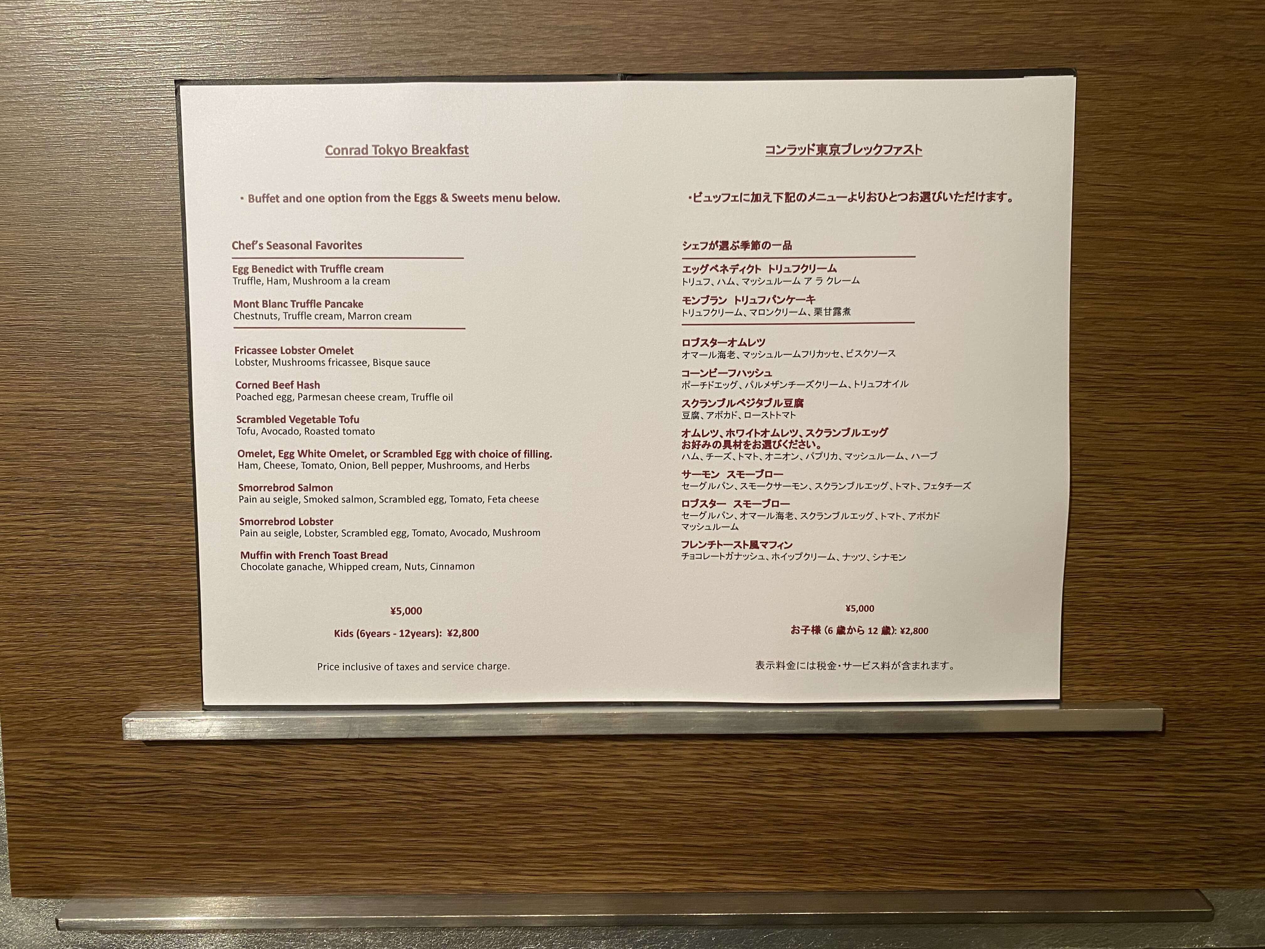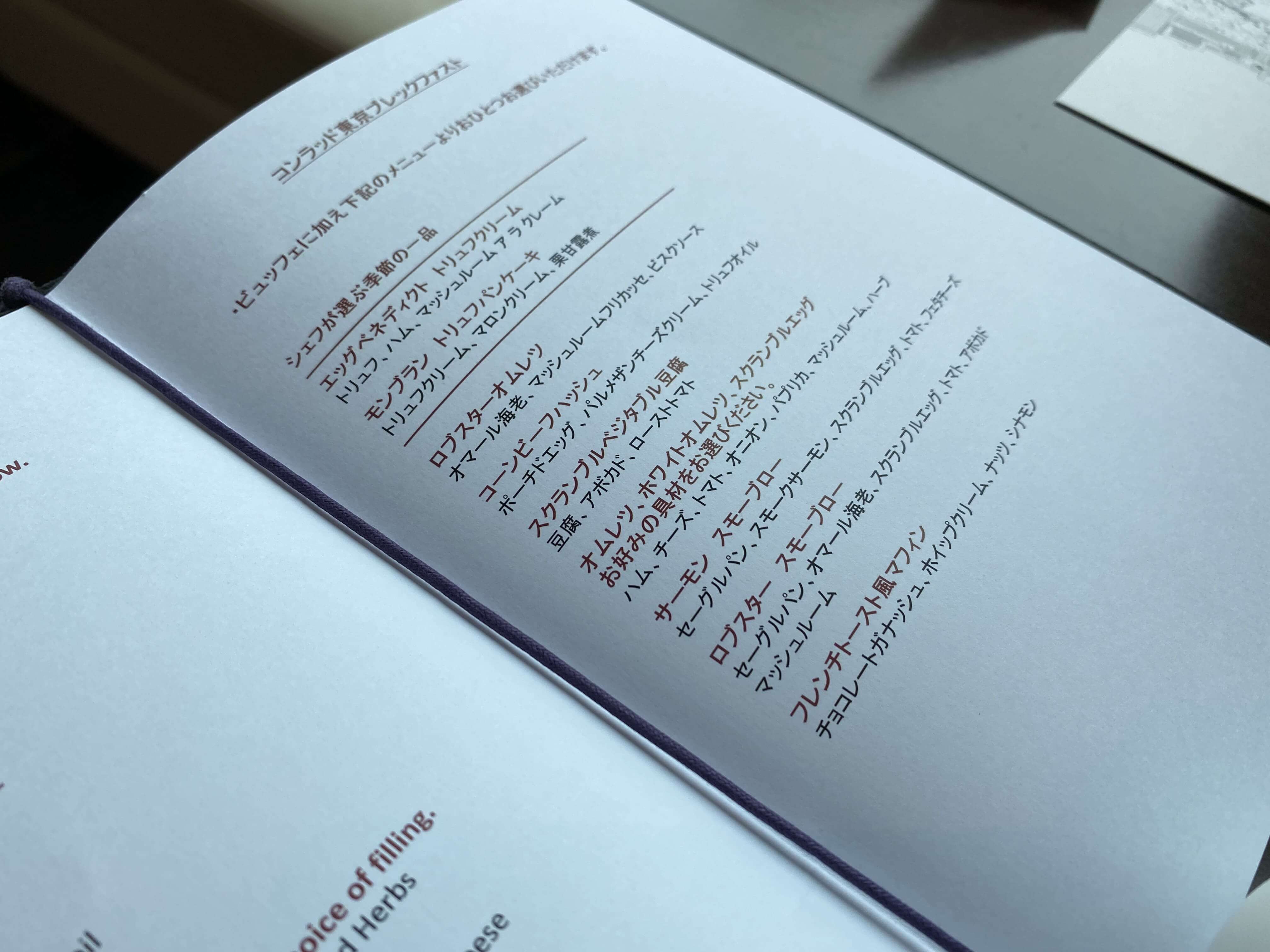 コンラッド東京の朝食メニューです▼