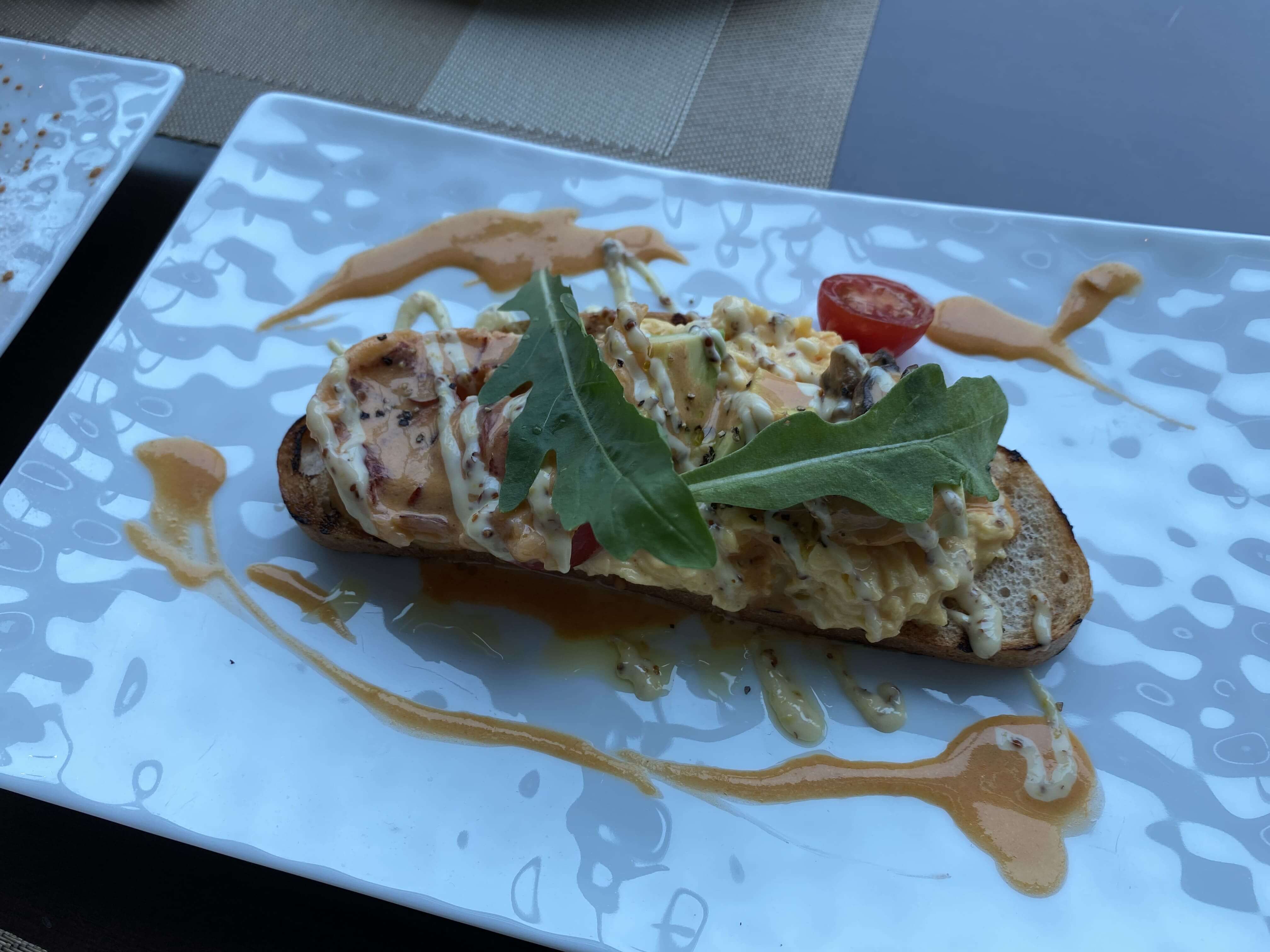 オマール海老に、スクランブルエッグに、トマト、アボカド、マッシュルームが入っています。