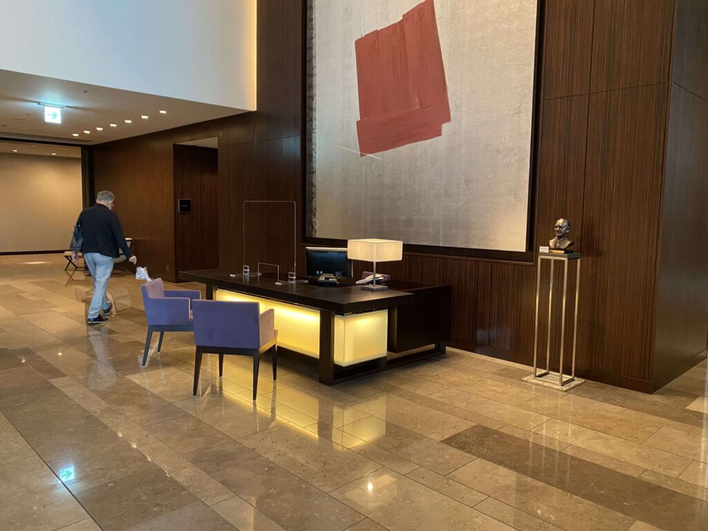 エレベーターホールと、レセプション全体はこんな感じです▼
