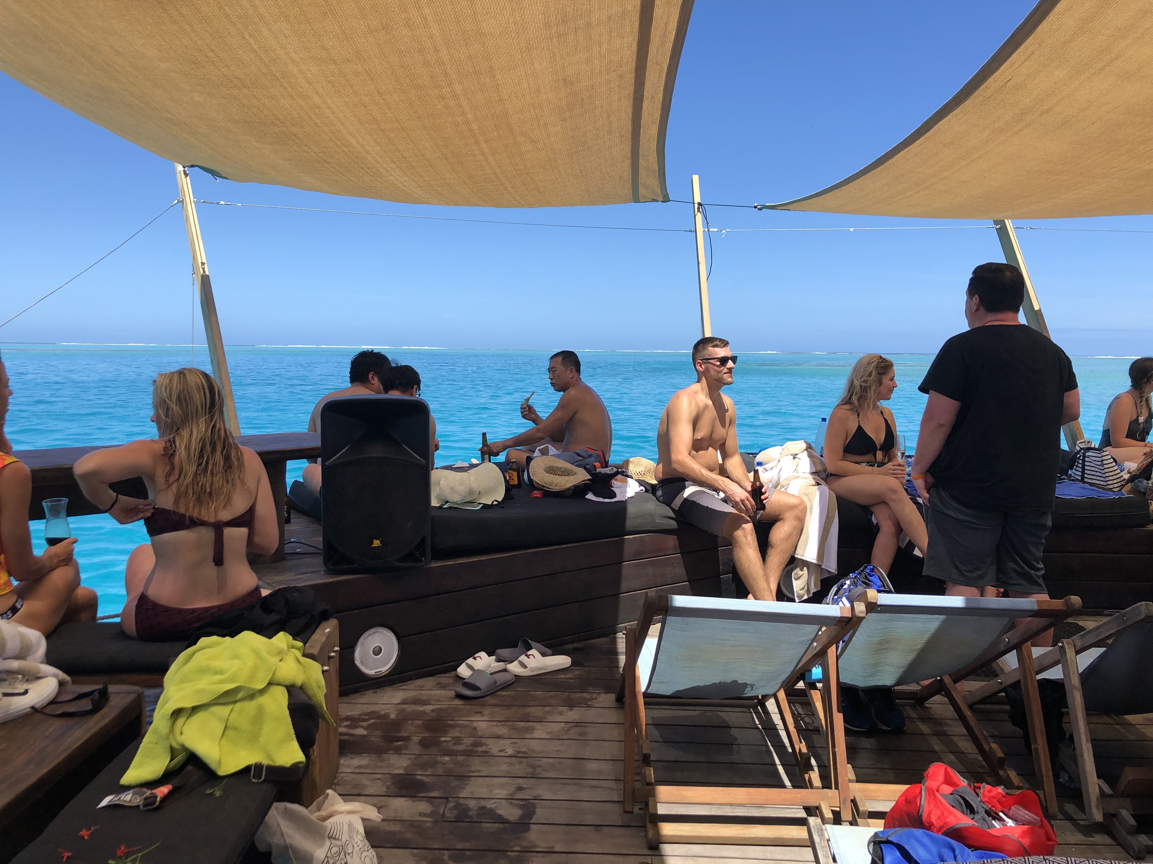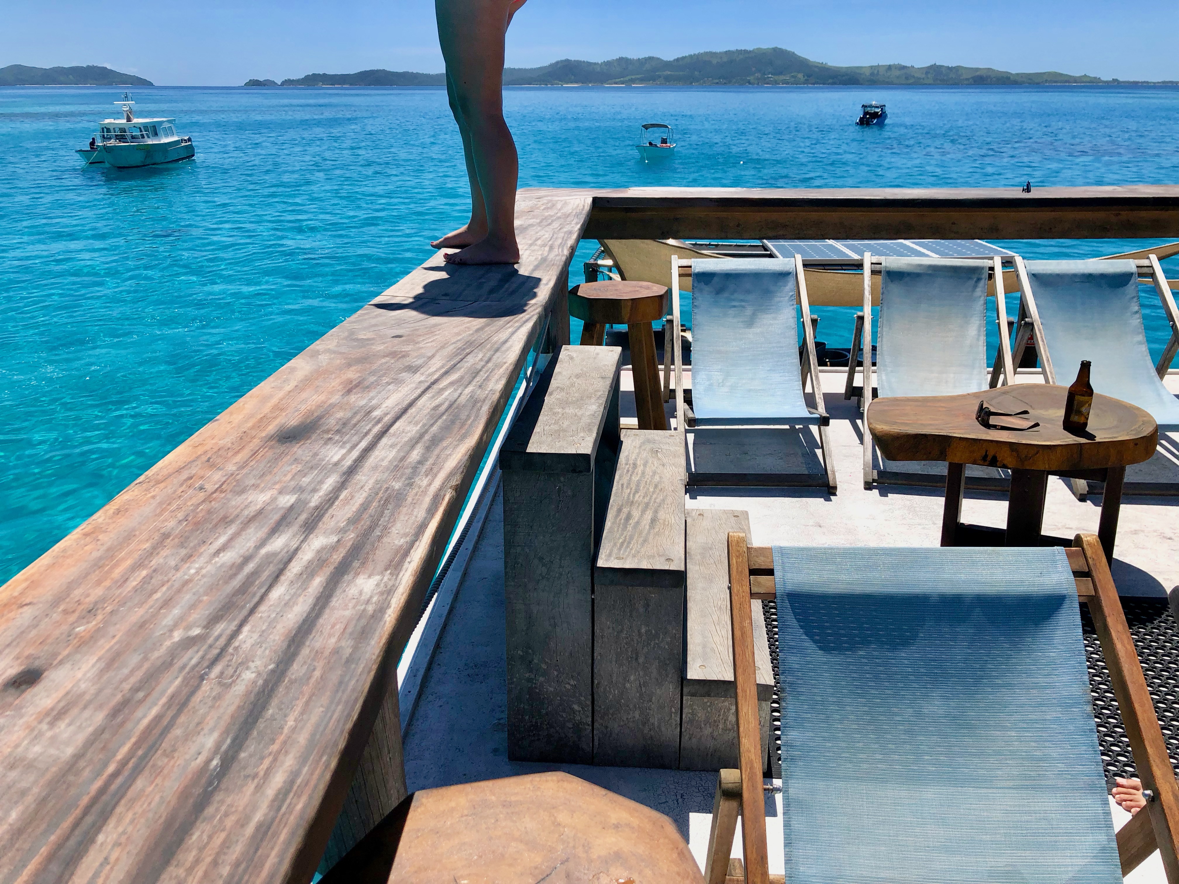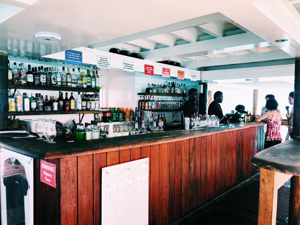 フィジーの本島から船で1時間の場所にあります。クラブミュージックが流れていて、お酒を飲んだり、ピザを食べたりできます。