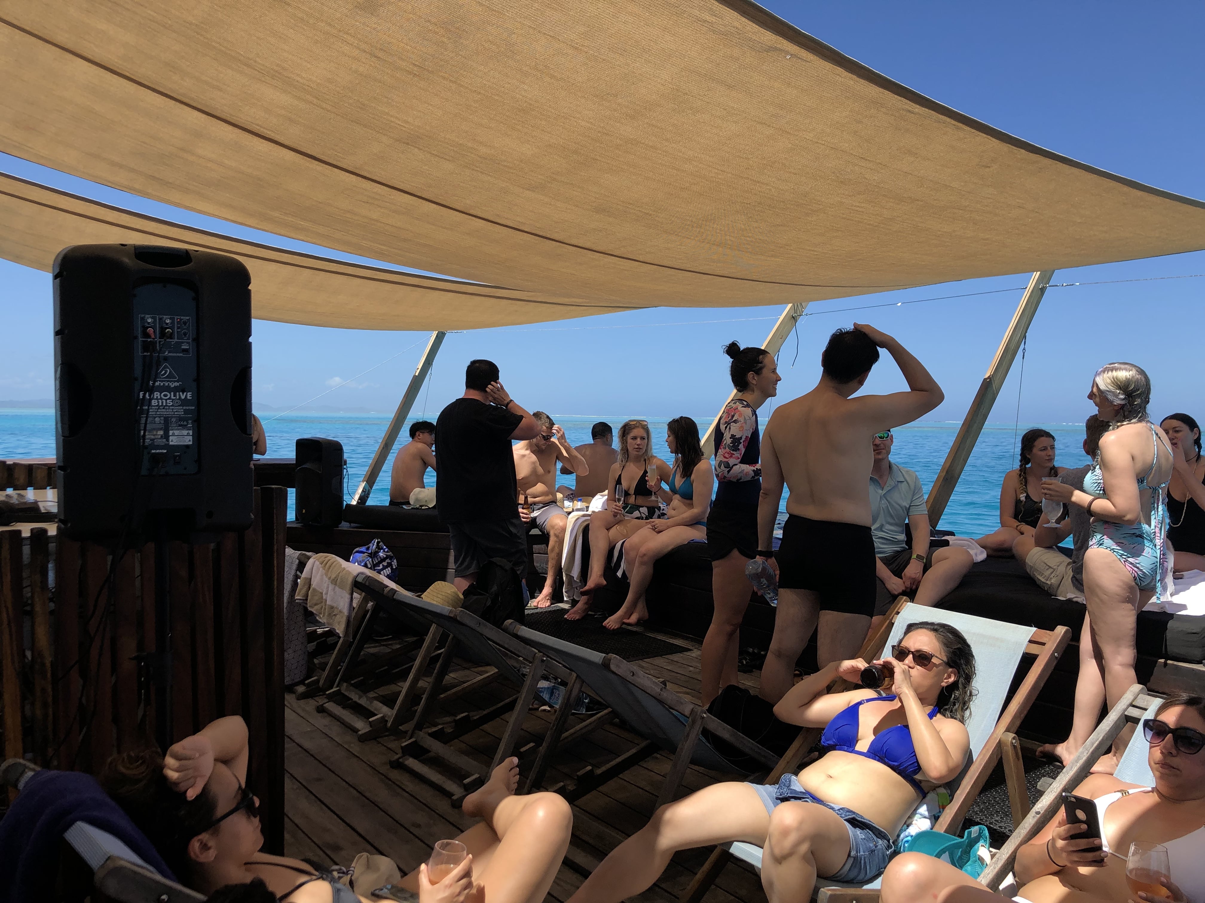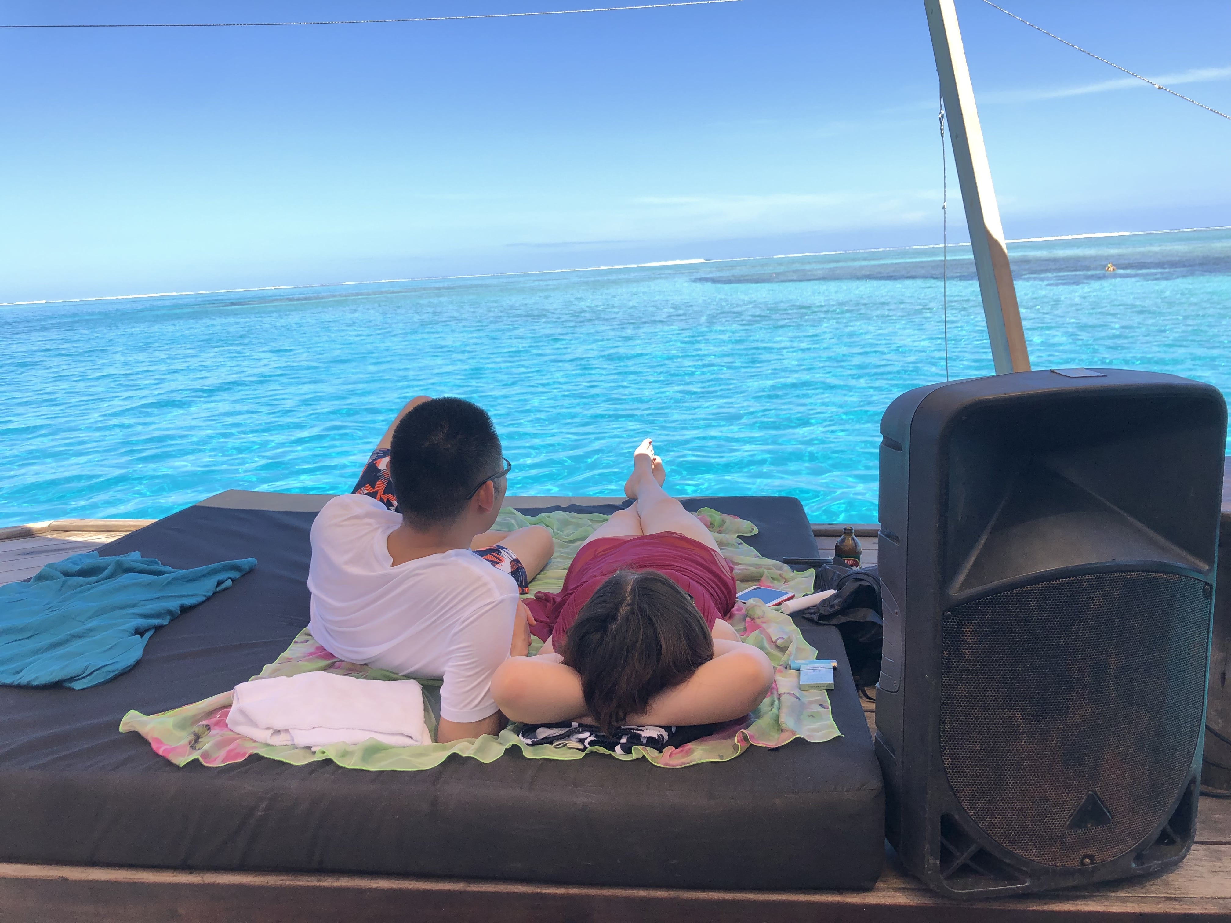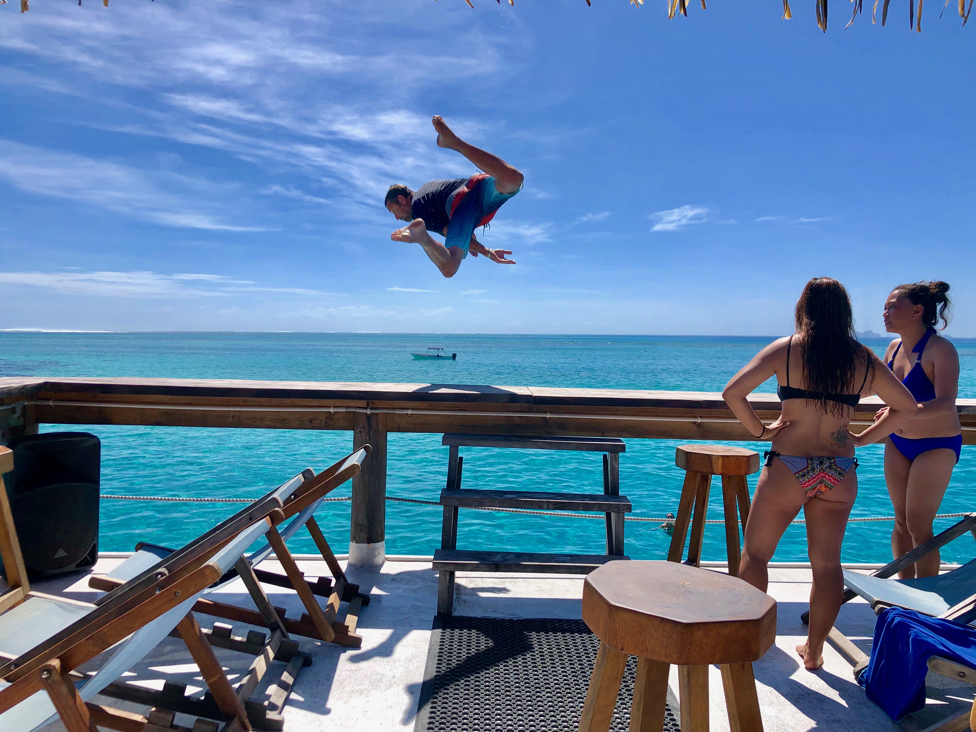 フィジーの本島から船で1時間の場所にあります。クラブミュージックが流れていて、お酒を飲んだり、ピザを食べたりできます。
