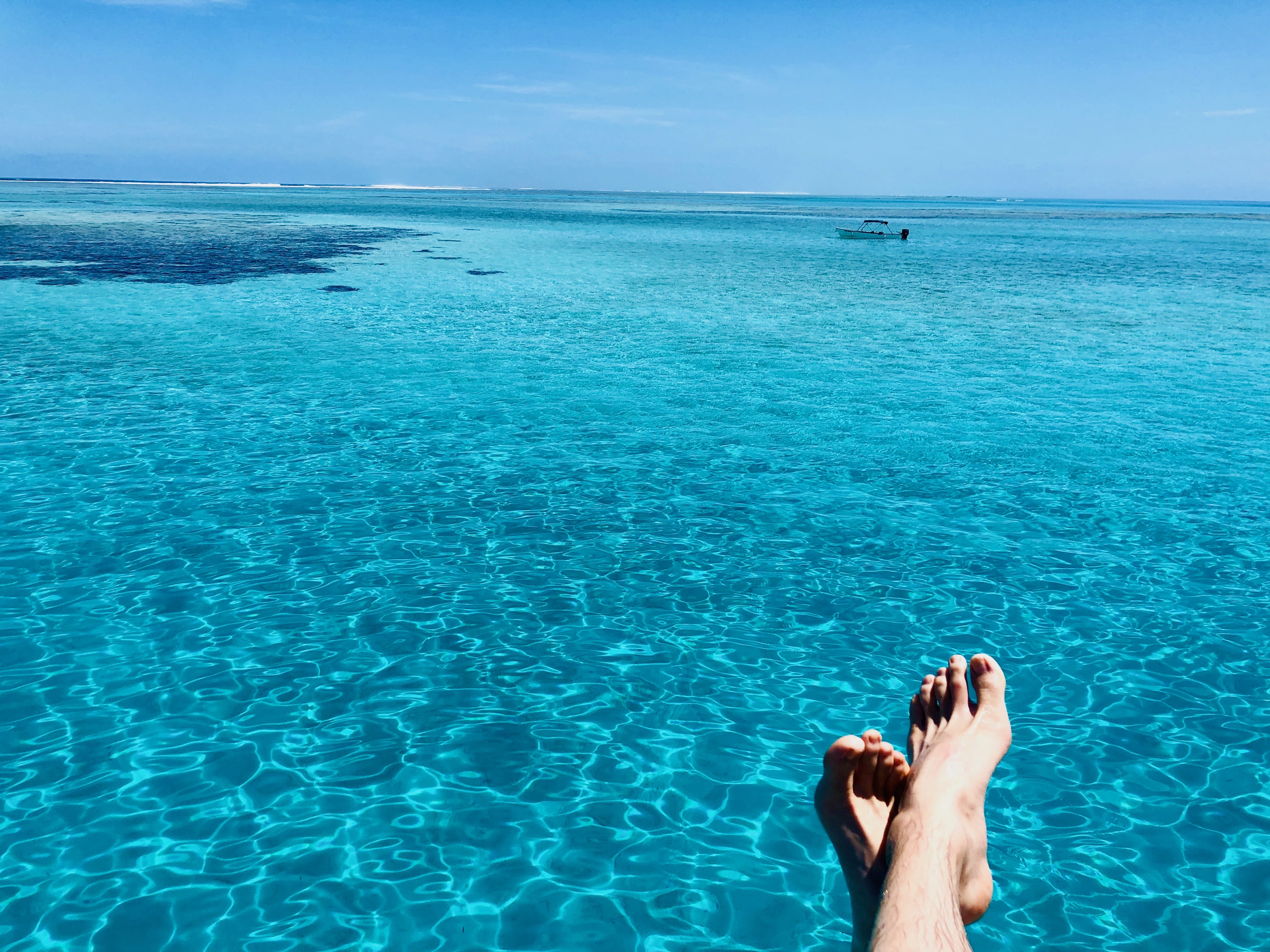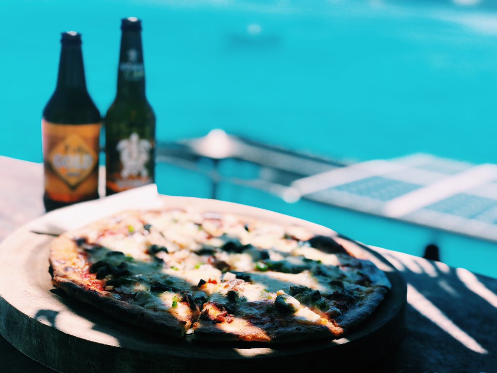 日本じゃありえないようなキレイな海を眺めたり。お酒を飲みながらピザを食べたり。シュノーケリングしたり。
