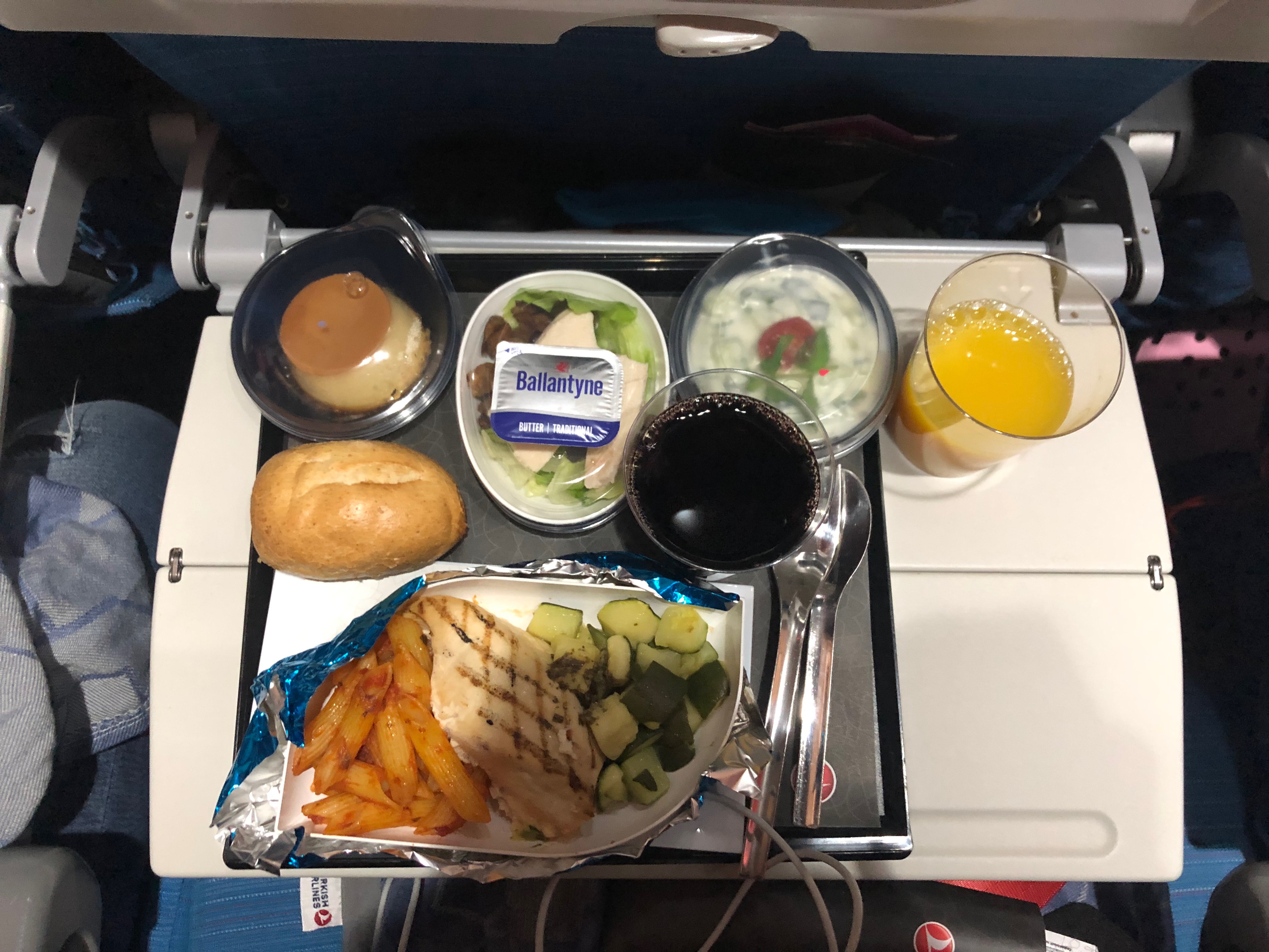 ランクが高い航空会社ではないので、こんなもんかとは思ったのですが、全体的に量が少ないなあ。と思いました。機内食に定評のある、ターキッシュエアラインはこんな感じなので▼