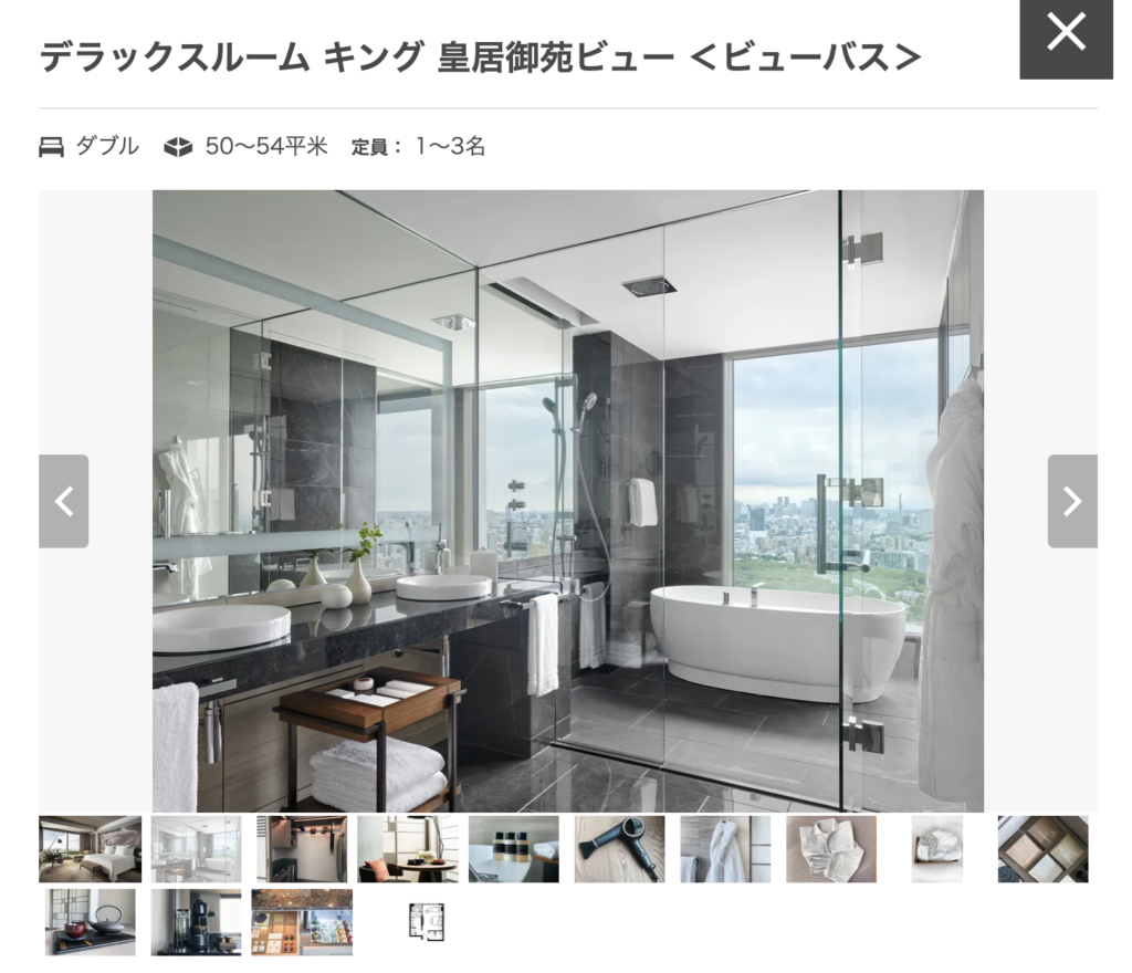 僕のおすすめは、今回泊まったお部屋である、デラックスルーム(50〜54㎡) 皇居ビュー × ビューバス。