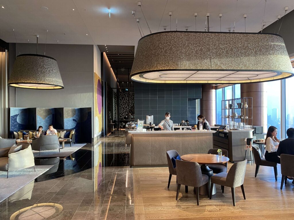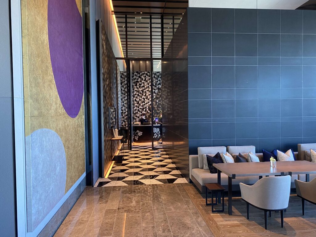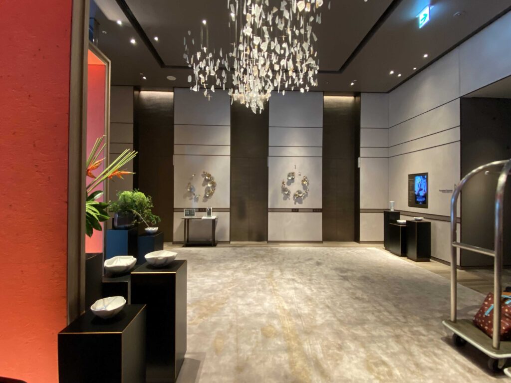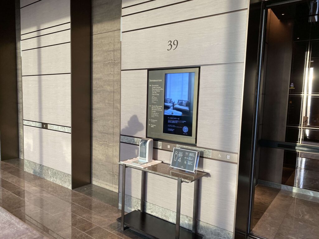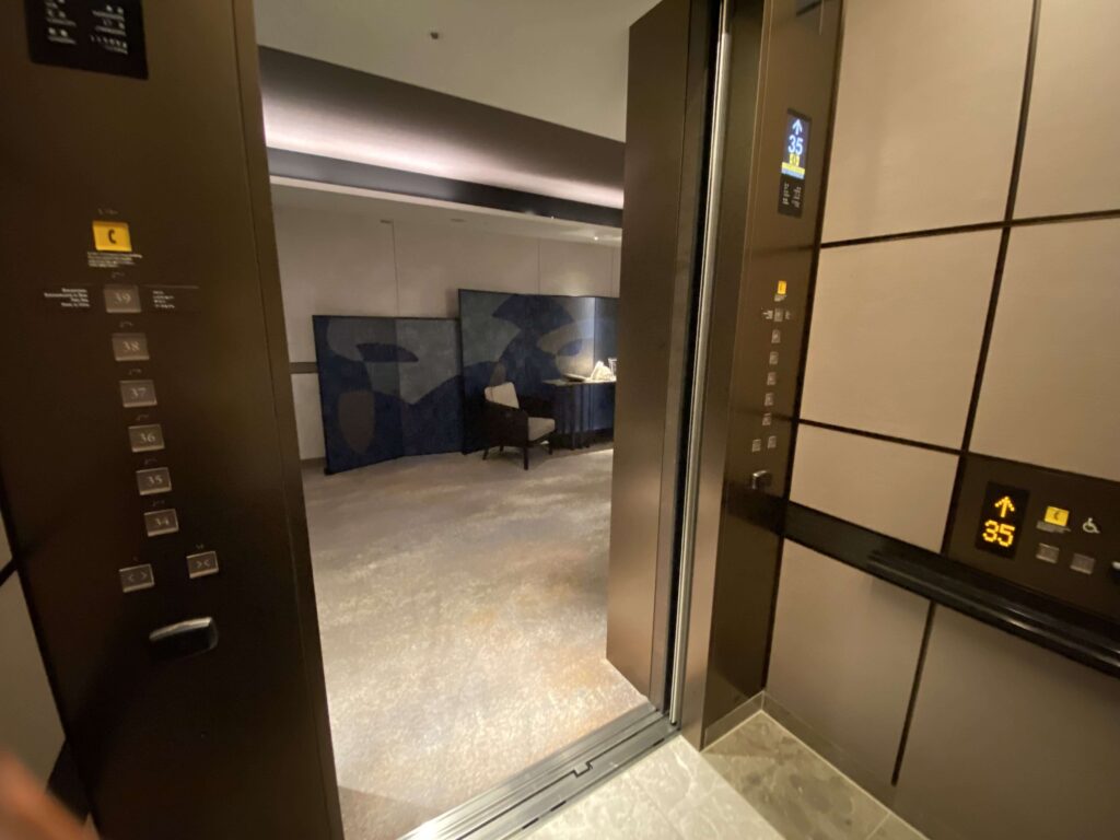 ▼1階のレセプションスペースで、名前を聞かれて&キャリーケースを運んでいただき、エレベーターのある39階のレセプションスペースへ。