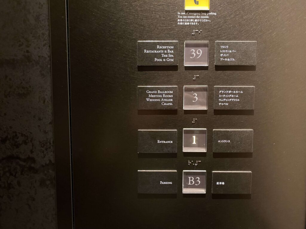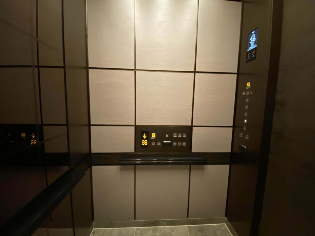 客室へ向かうエレベーターホール客室フロアは34〜38階なので、先ほどとは別のエレベーターを使って向かいます!