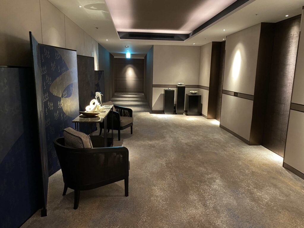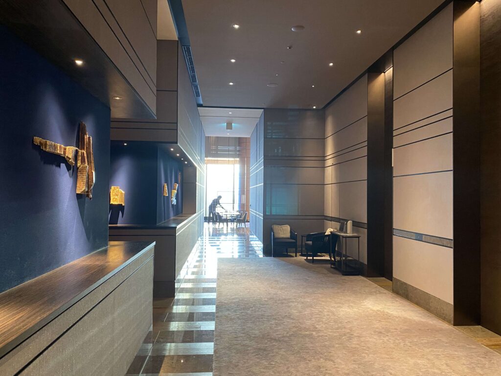 THE LOUNGE近くからエレベーター方向を見た方向THE LOUNGEを左に曲がると、 レセプションがあります▼