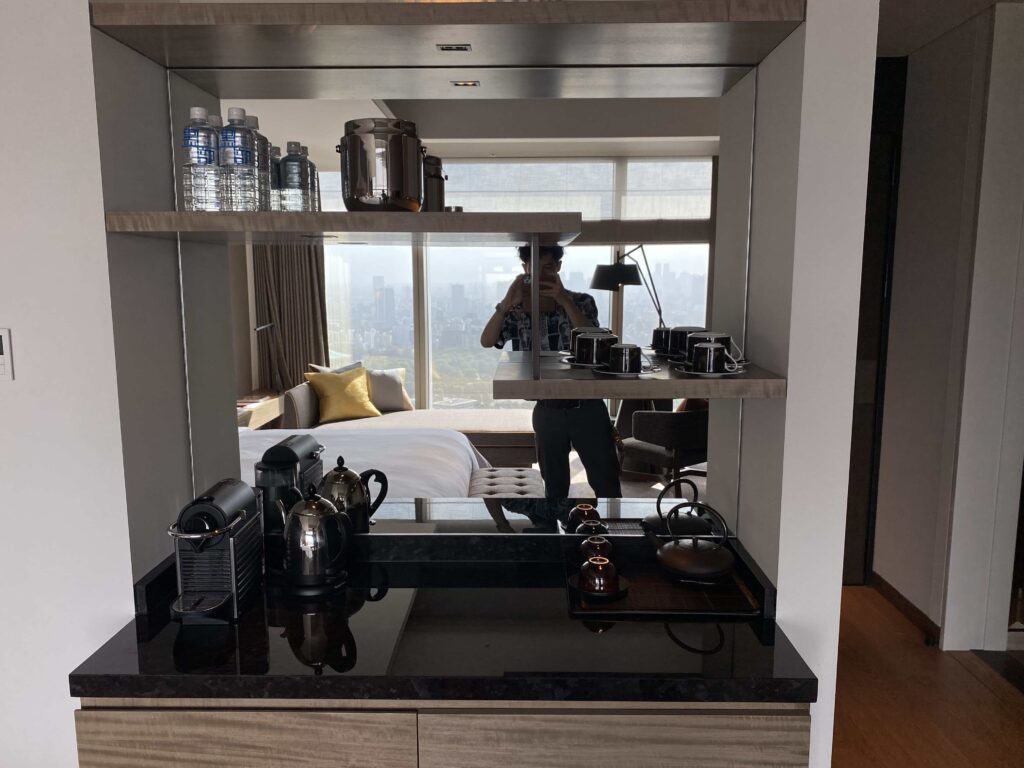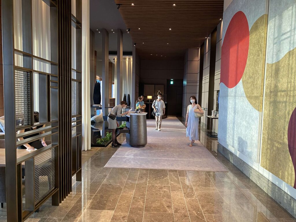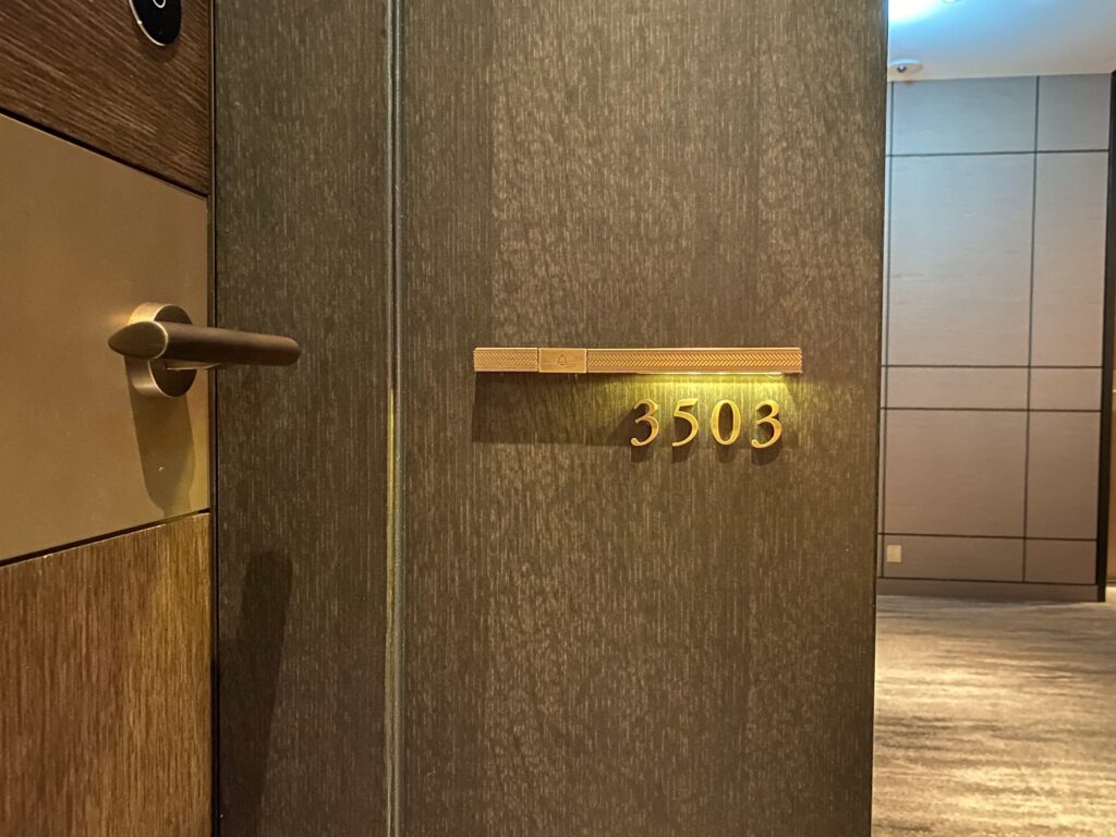 フォーシーズンズ 大手町は、マンダリンオリエンタルやアンダーズ東京、パークハイアット東京と同じように、フロアの最上階にレセプションがあり、その下のフロアにお部屋がある構造になっています。