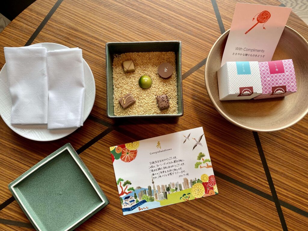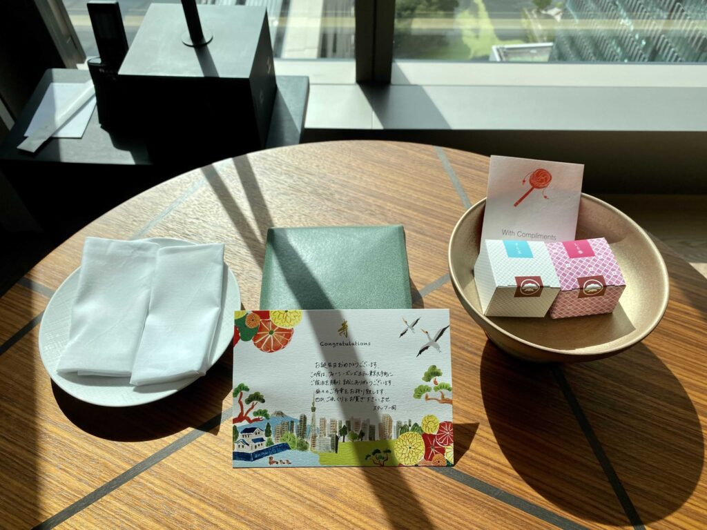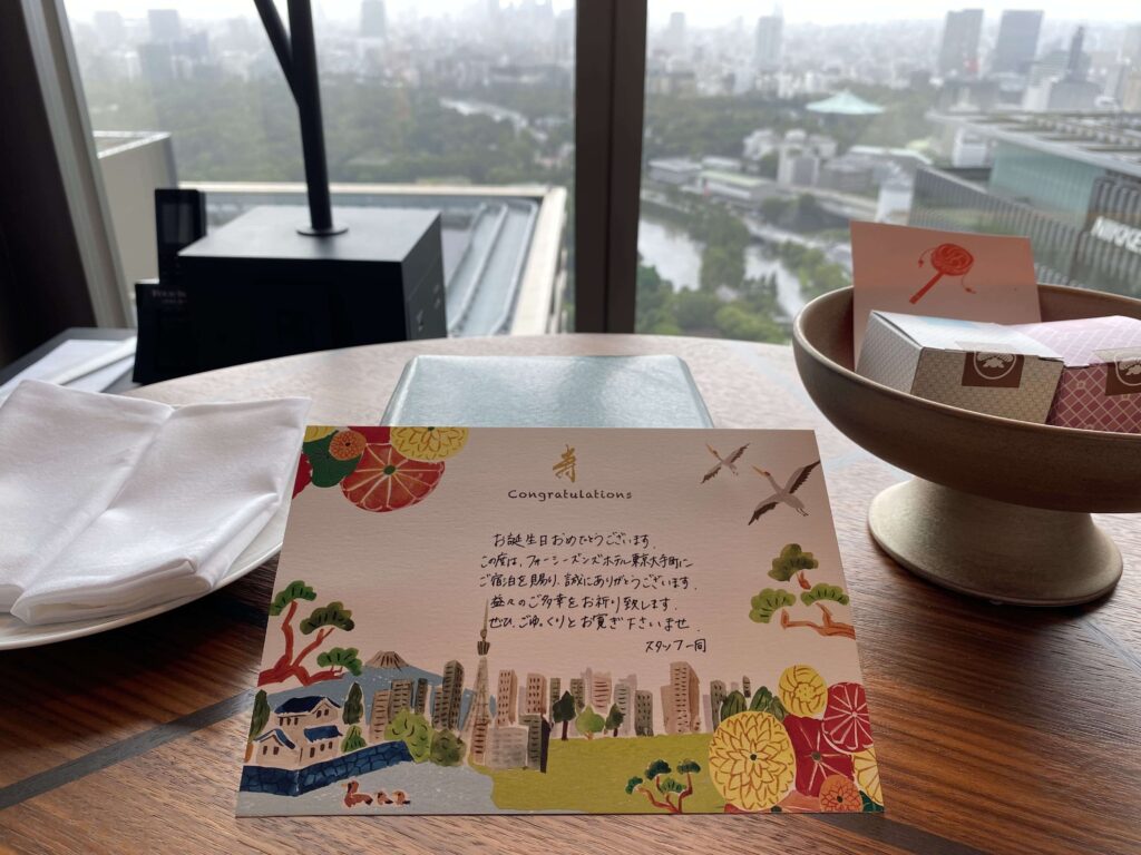 5つ星ホテル巡りを始めて、このフォーシーズンズ 大手町で10軒目。誕生日リクエストは初めてだったので、どんな特典を受けられるのかワクワク。