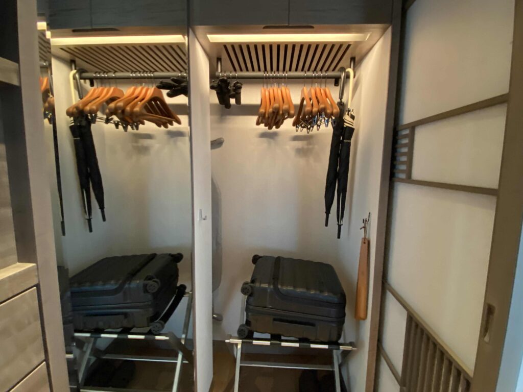 セキュリティボックスとアイロン(右上)非常にコンパクトにまとめっているクローゼット。他のホテルだと、ベッドルームに続く廊下にあったりするのですが、専用ルームのようだったので、ちょっとしたウォークインクローゼットみたいでとても使いやすかった!