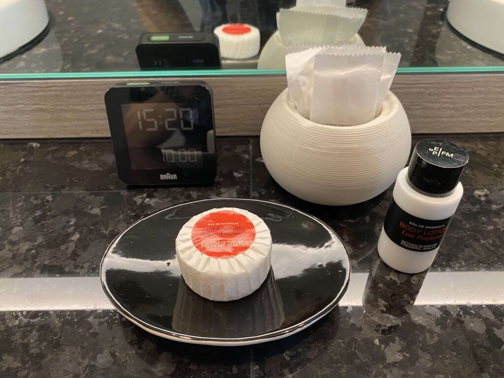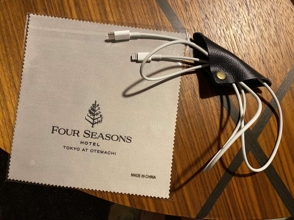 革製のコードまとめと、スクリーンを磨く布がもらえたのが感動。世界を代表するブランドということもあって、こういったブランドグッズも充実。PCを広げて、ディナーへ行ったのですが、それがよかったのかな…。今までで最高の満足度のターンダウンサービスでした。