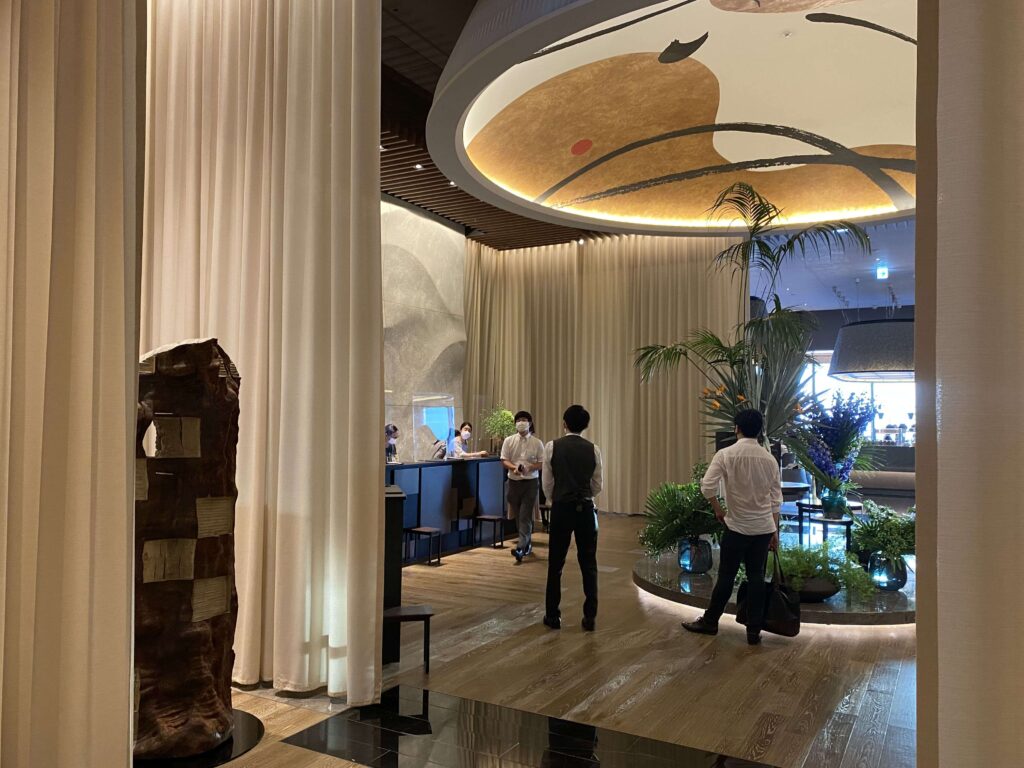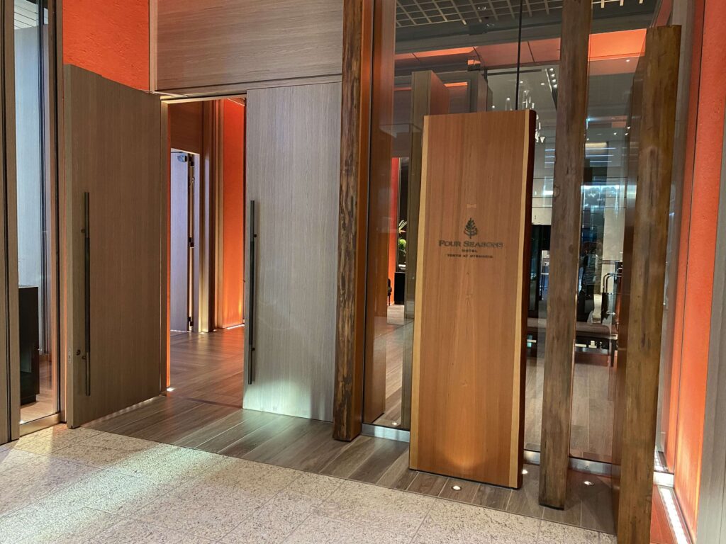 てことで、入り口に到着。他の部分は、THE オフィスタワーみたいな無機質な内装だったのですが、フォーシーズンズ 大手町の入り口は雰囲気が違いました…。