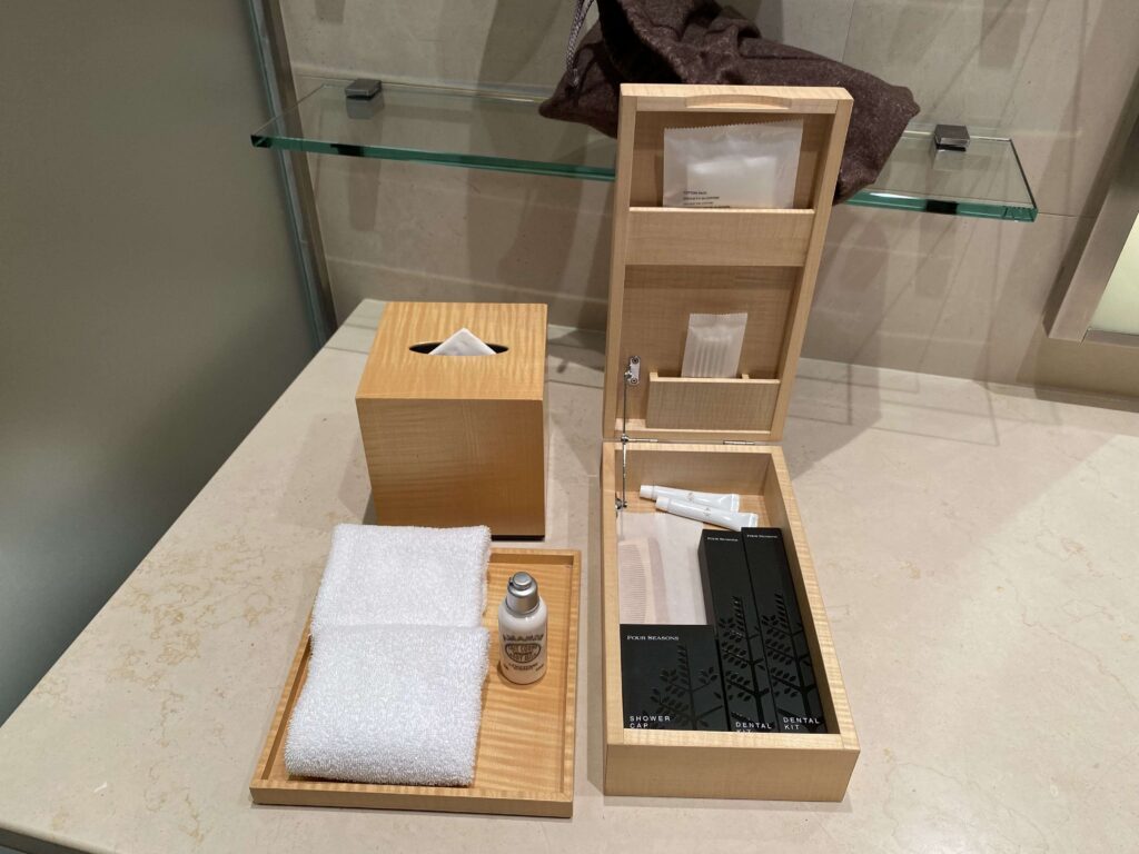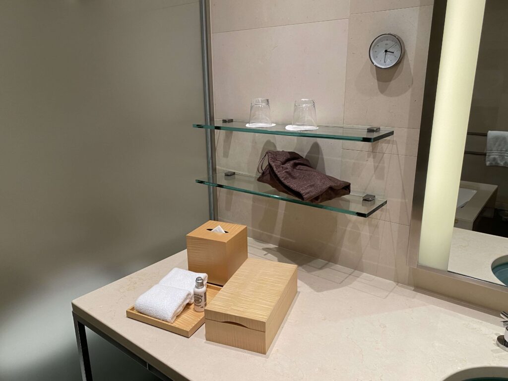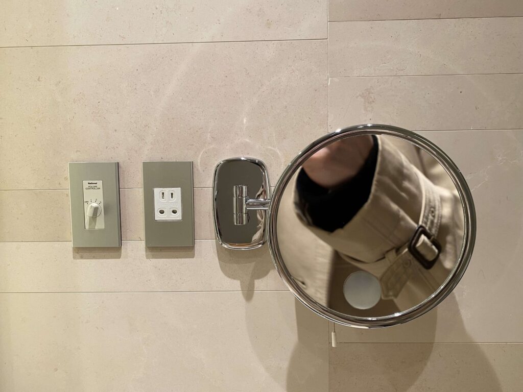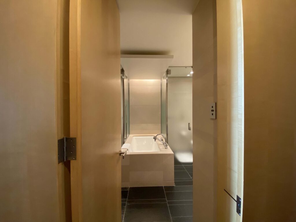鏡が露骨に見えているのあまり好きじゃないので、結構嬉しい…。フォーシーズンズホテル丸の内はなるべく余計なものを見せず、スタイリッシュに魅せているような印象を受けました。すてきだ。