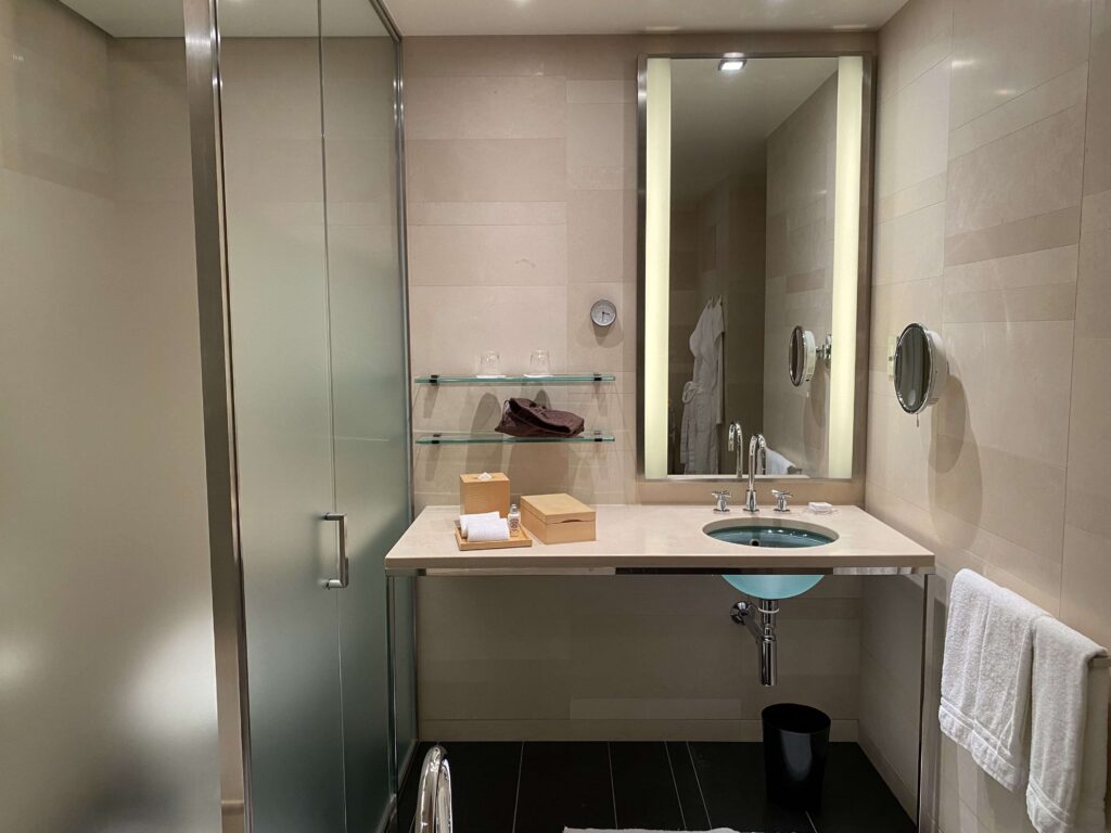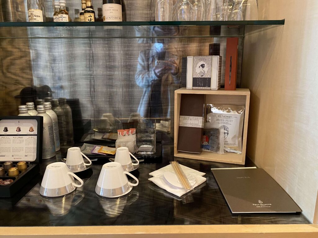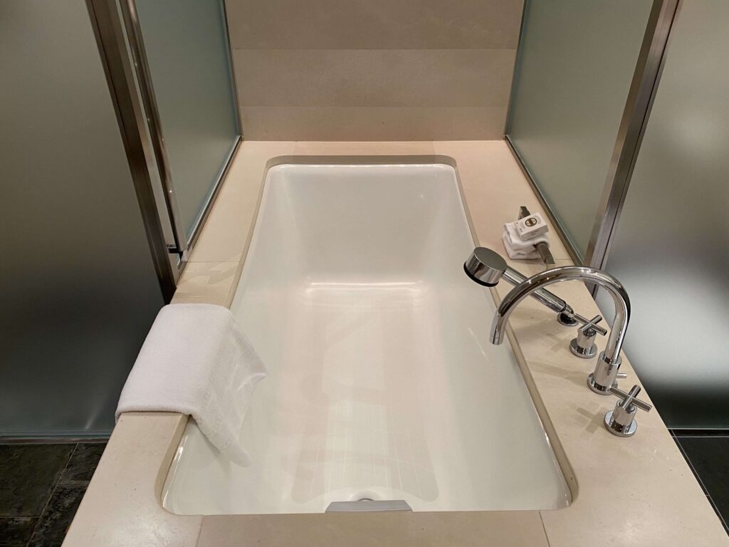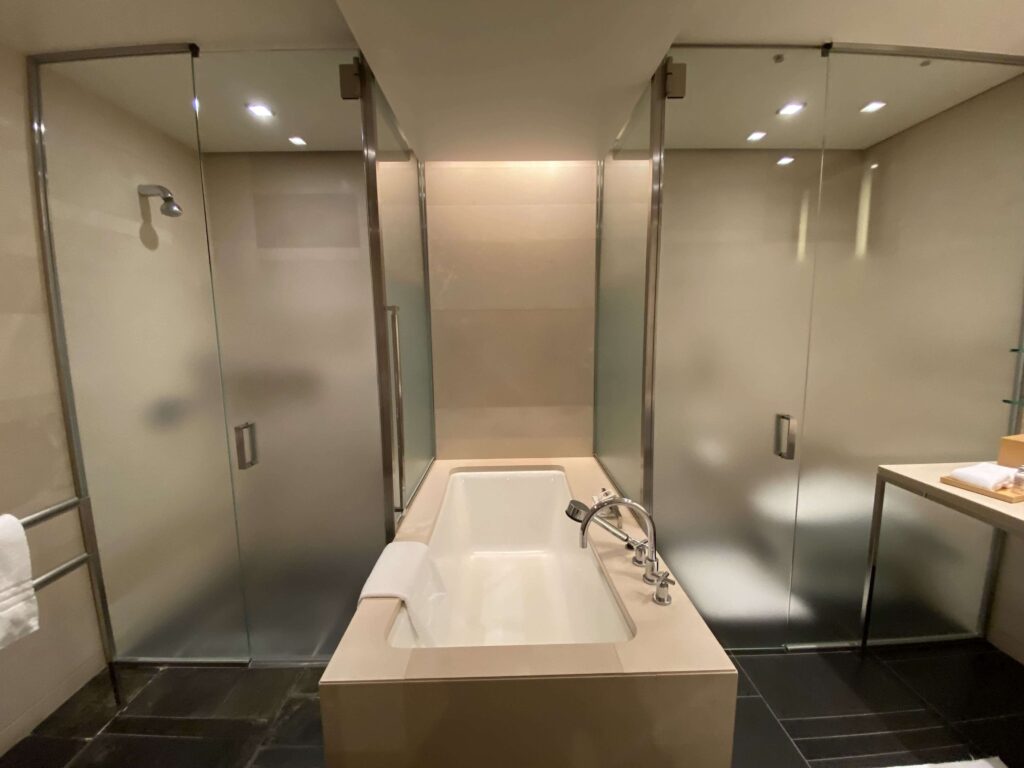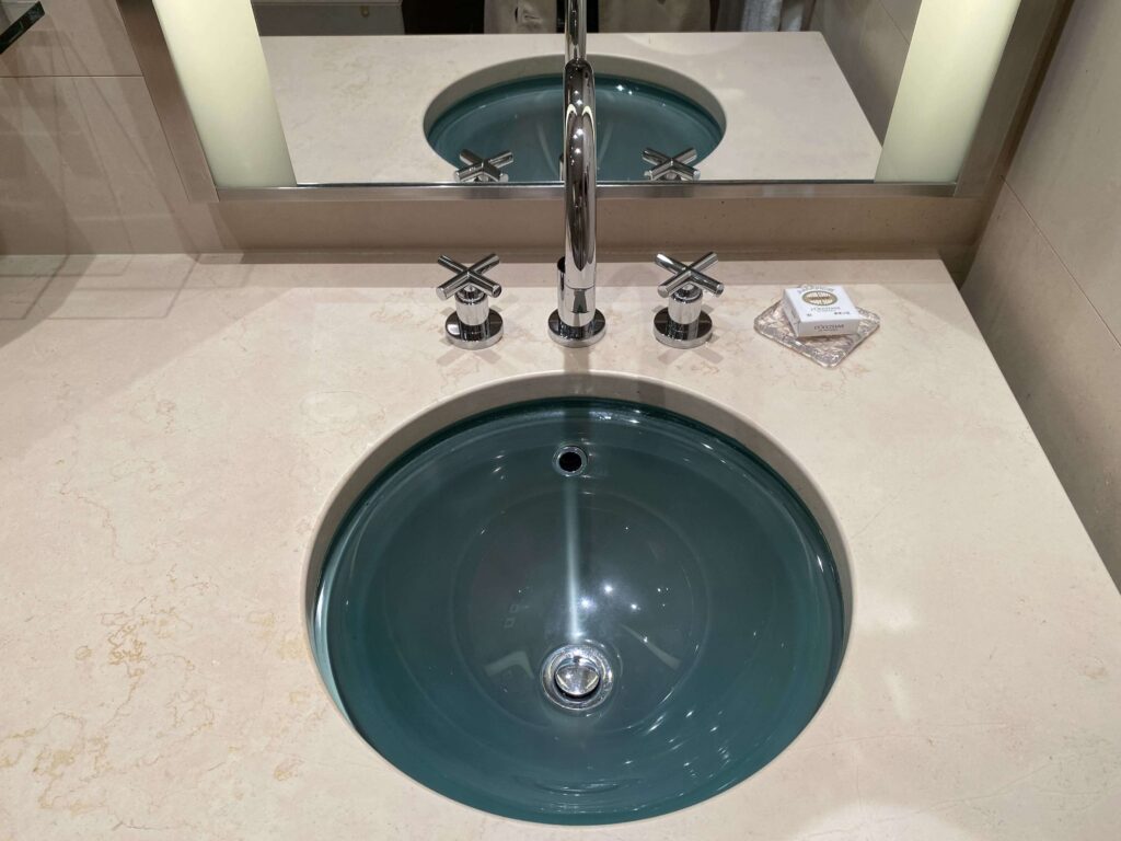 鏡が露骨に見えているのあまり好きじゃないので、結構嬉しい…。フォーシーズンズホテル丸の内はなるべく余計なものを見せず、スタイリッシュに魅せているような印象を受けました。すてきだ。