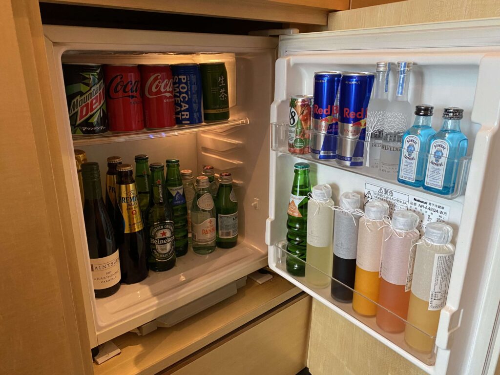 ウィルキンソンのドリンクやプレモル、ハイネケンなど、ホテルの中ではしっかりと揃っているラインナップだと思います!