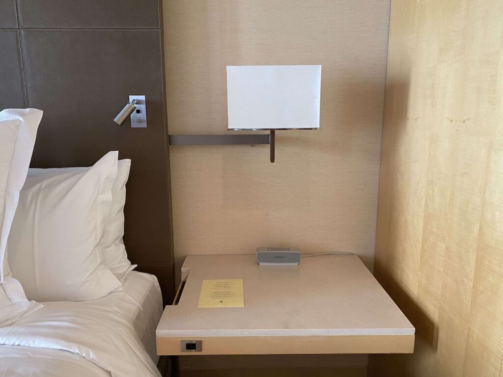 ベッド横のはBOSEのスピーカーとコンセント。とてもシンプル。