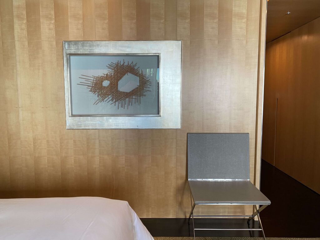 荷物置きとアート作品。