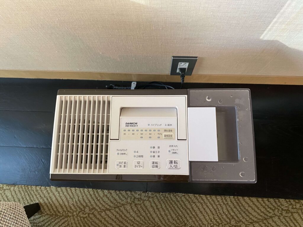 加湿器ももちろん備えつけソファーの横には、ワークデスク。