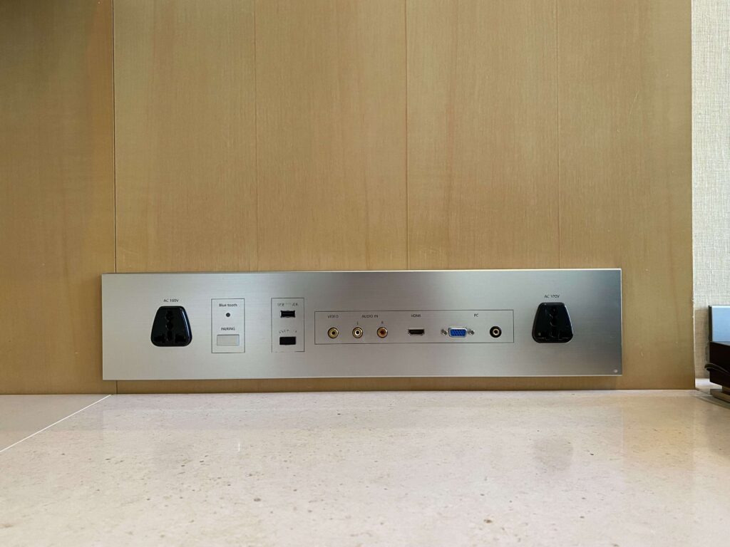 コンセントは、マルチプラグも。USBやいろいろな端子があるので、仕事の会議とかにも使えそう…!