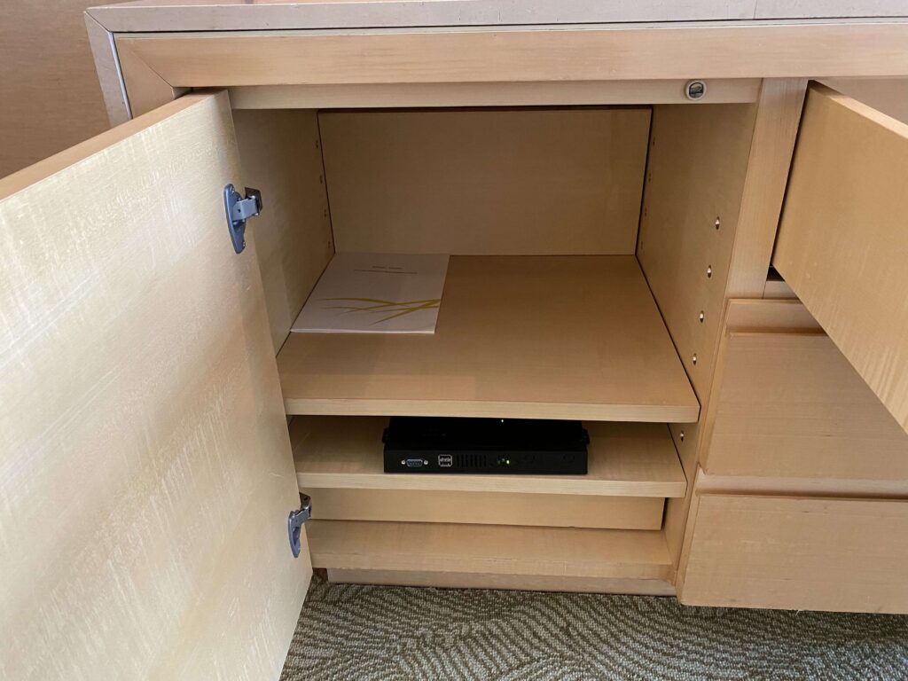 横の引き出しには、パソコンとPCを繋ぐ端末。プロジェクターとしてTVは使える感じ。