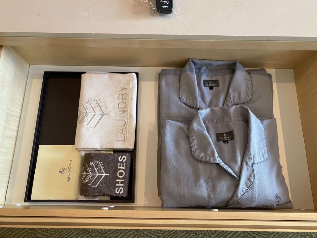 フォーシーズンズの寝巻きは、セパレートタイプなのですが、着心地が最高なんです…。25くらい高級ホテルを泊まったのですが、一番好きで購入を考えたほど。