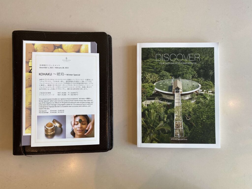 チェックインからお部屋に入るまで十分にフォーシーズンズ感を満喫できたところで、次の章から、お部屋もチェックしていきましょう。