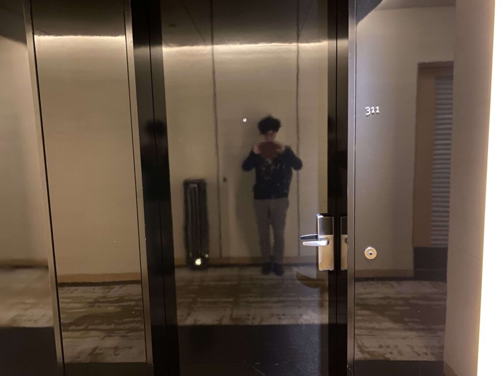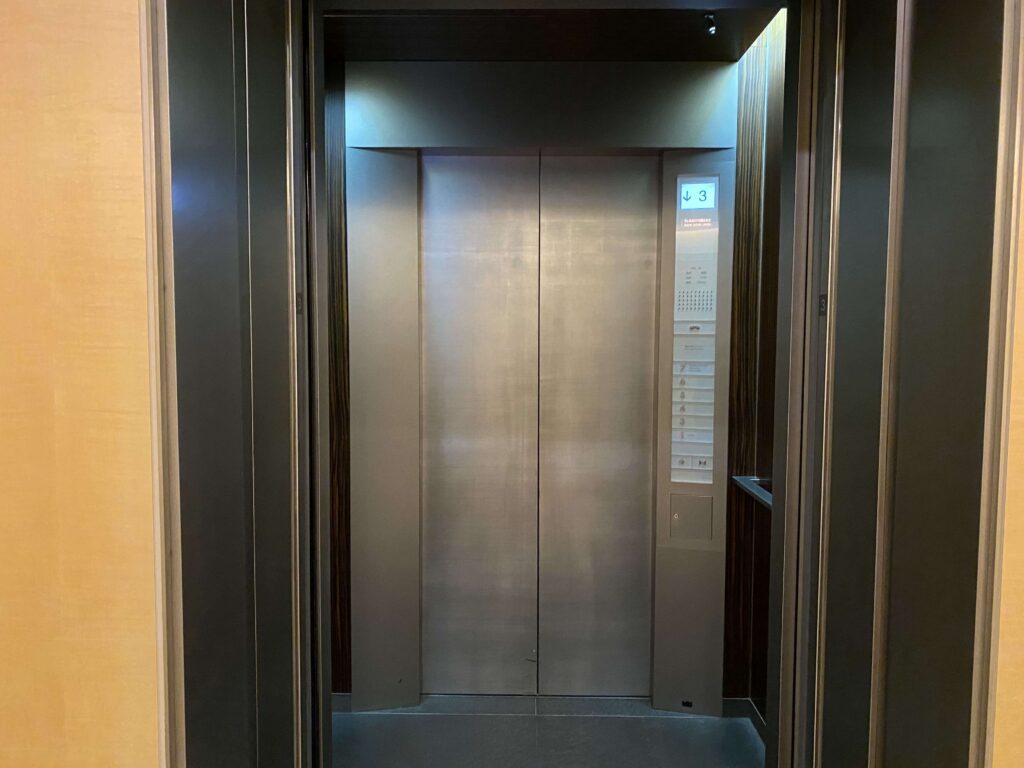 簡単なチェックイン手続きを済ませて、いざお部屋へ。目の前にエレベーターがあるので、移動もめちゃくちゃに簡単。