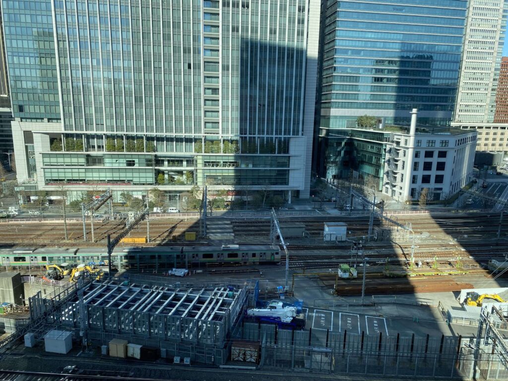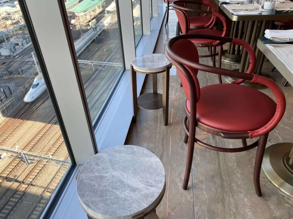 レストランからの眺望は、東京駅付近。行き来する新幹線を見ることができます。