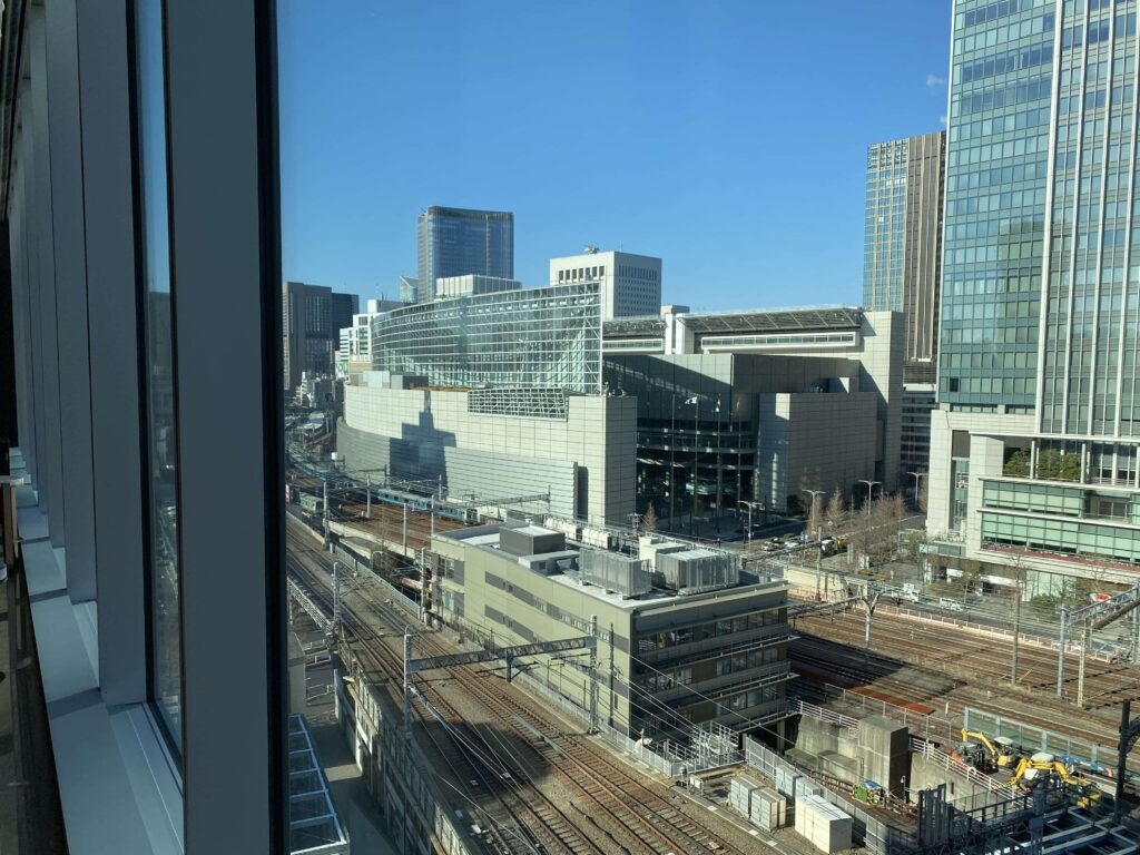 いかにも都会っぽいですが、東京っぽくて僕は好きだなあと思いました。こんなに線路が近いのですが、音や振動は全くなし。落ち着いた空間だったので、ご安心を。