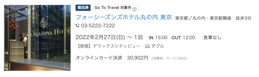 フォーシーズンズホテル丸の内が3万円程度で泊まるのはすごすぎる…と思って、即予約でした!フォーシーズンズ 大手町に泊まってからあまりにも良すぎたので、絶対に丸の内にも!ということで、予約しました。