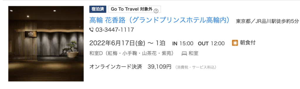 一番格安で予約ができるなと思ったのが、僕が予約したサイトである、一休.com。
