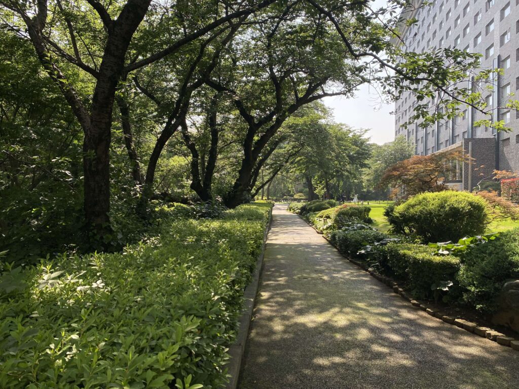 高輪 花香路は、4つのホテルがある20,000平米に及び敷地に位置しており、庭園の散歩を楽しむことができます。