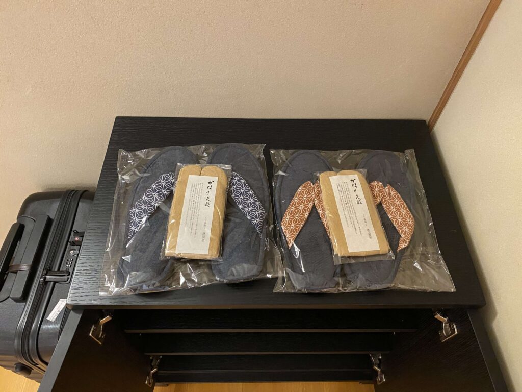 この足袋風スリッパ、本当に履き心地がよくて持ち帰って、家でも使っています(笑)普段使いにもめちゃくちゃ心地よくて、ここまでハマったのは30近くのホテルを巡っていて初めてなので、純粋に感動ました。