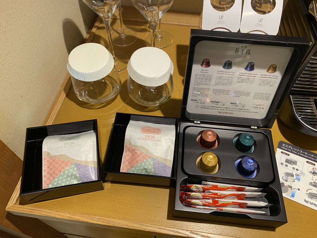 このネスプレッソのカプセルの種類は、ホテルによって全然違うので、ホテルステイの密かの楽しみ。紅茶だったり、ホテルオリジナルのお茶も楽しんでくださいね。