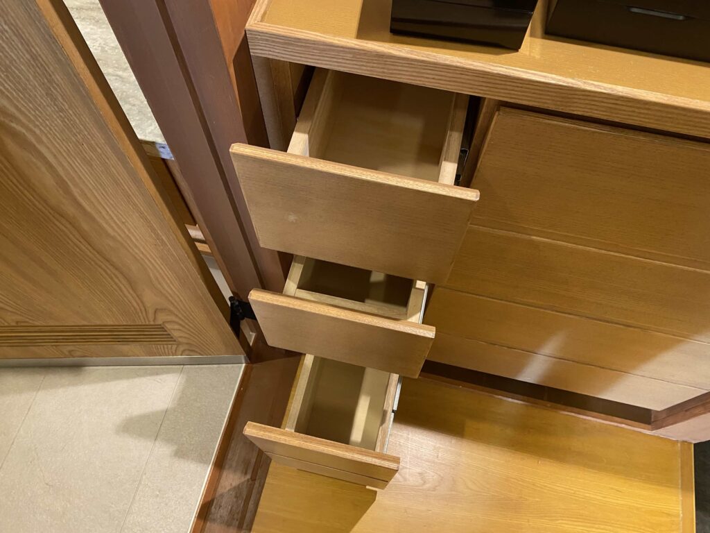 真ん中は、テレビや引き出し類。