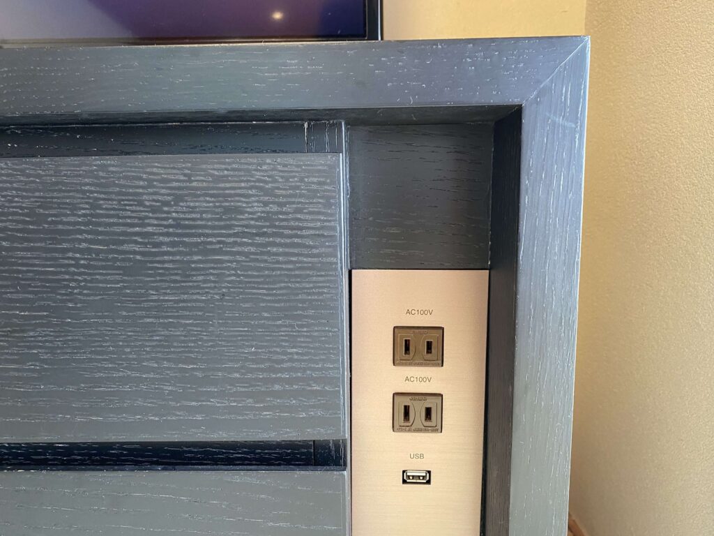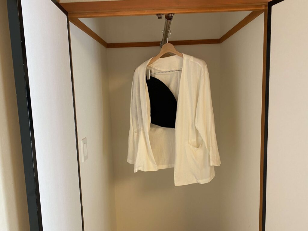 テレビ下部分にコンセントがあるので、机で仕事する際にこれを使う感じ!▼奥のクローゼットはこんな感じです。