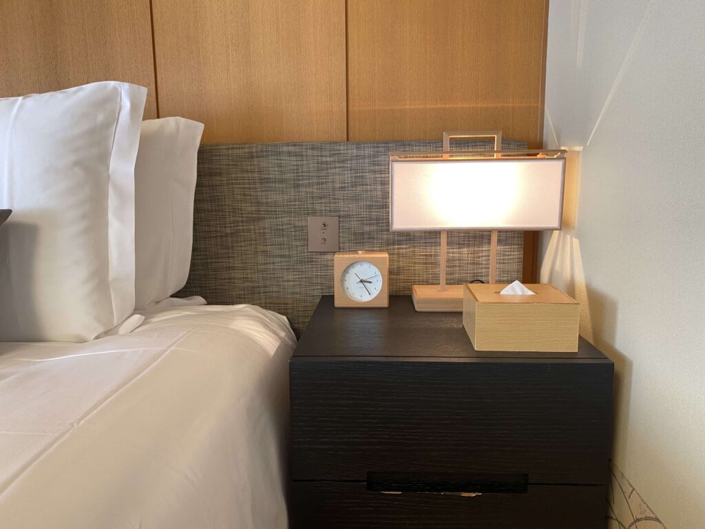 ▼左手には、ライトのスイッチや電話がありました。このへんは他のホテルとは変わらずですね!