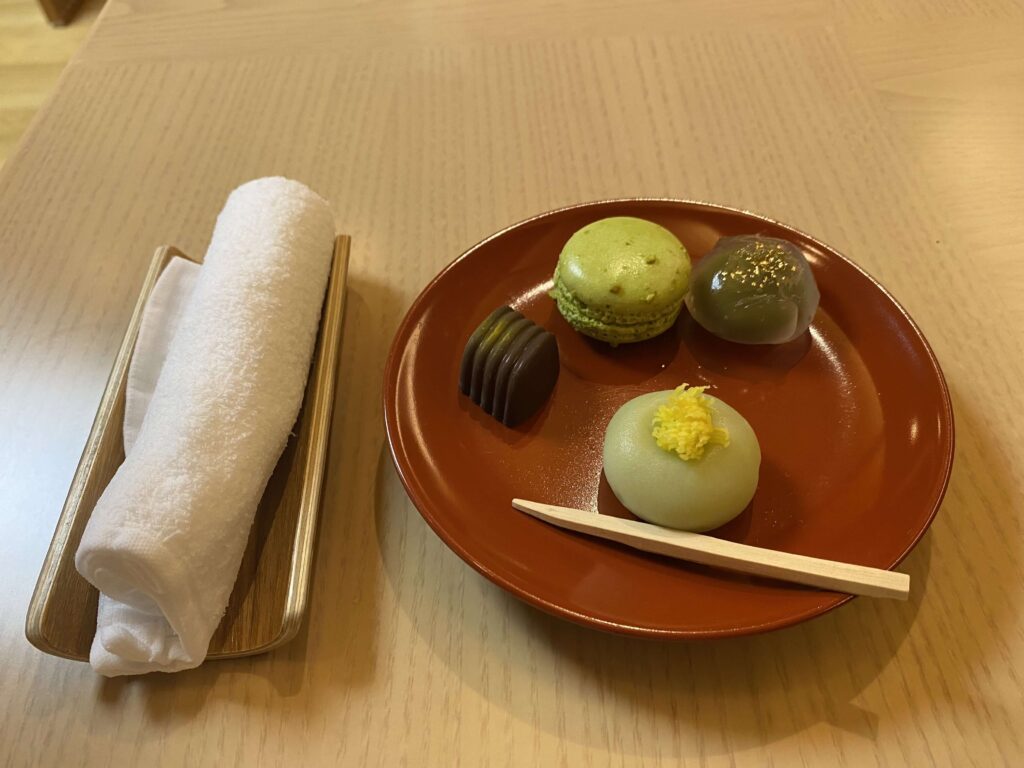 また、ウェルカムスイーツと茶菓子と抹茶が。