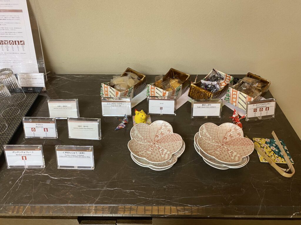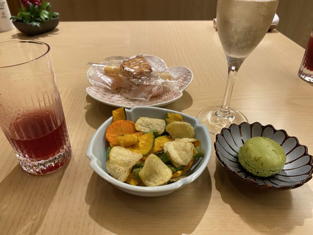 宿泊者専用ラウンジと聞くと、リッツカールトンの高層階にあるクラブラウンジを想像してしまい、景色よし/ホスピタリティよし /食べ物のクオリティよしってイメージだったものの、高輪 花香路のラウンジは窓がないため、ちょっと窮屈な印象を受けました。